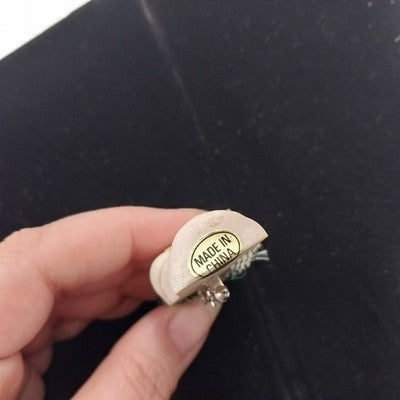 Charming and festive, this white acrylic snowman brooch features a green and white checked neck scarf, cozy earmuffs, and a cheerful "Make a Wish" sign in hand. The whimsical design adds a playful touch to any winter or holiday outfit. Comes with a roll-over safety clasp closure for secure wear.