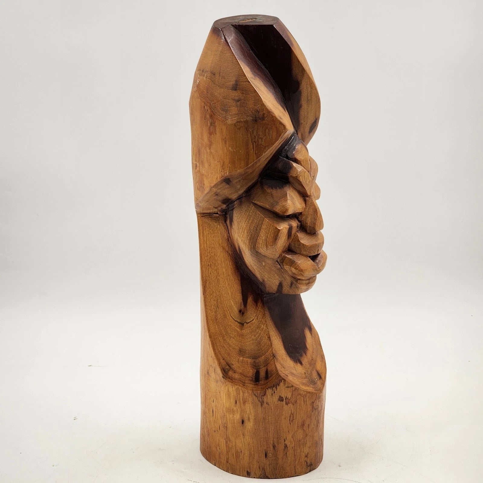 African Hand Carved Wood Head Bust Art Sculpture Figurine 16.5" Vintage Statue