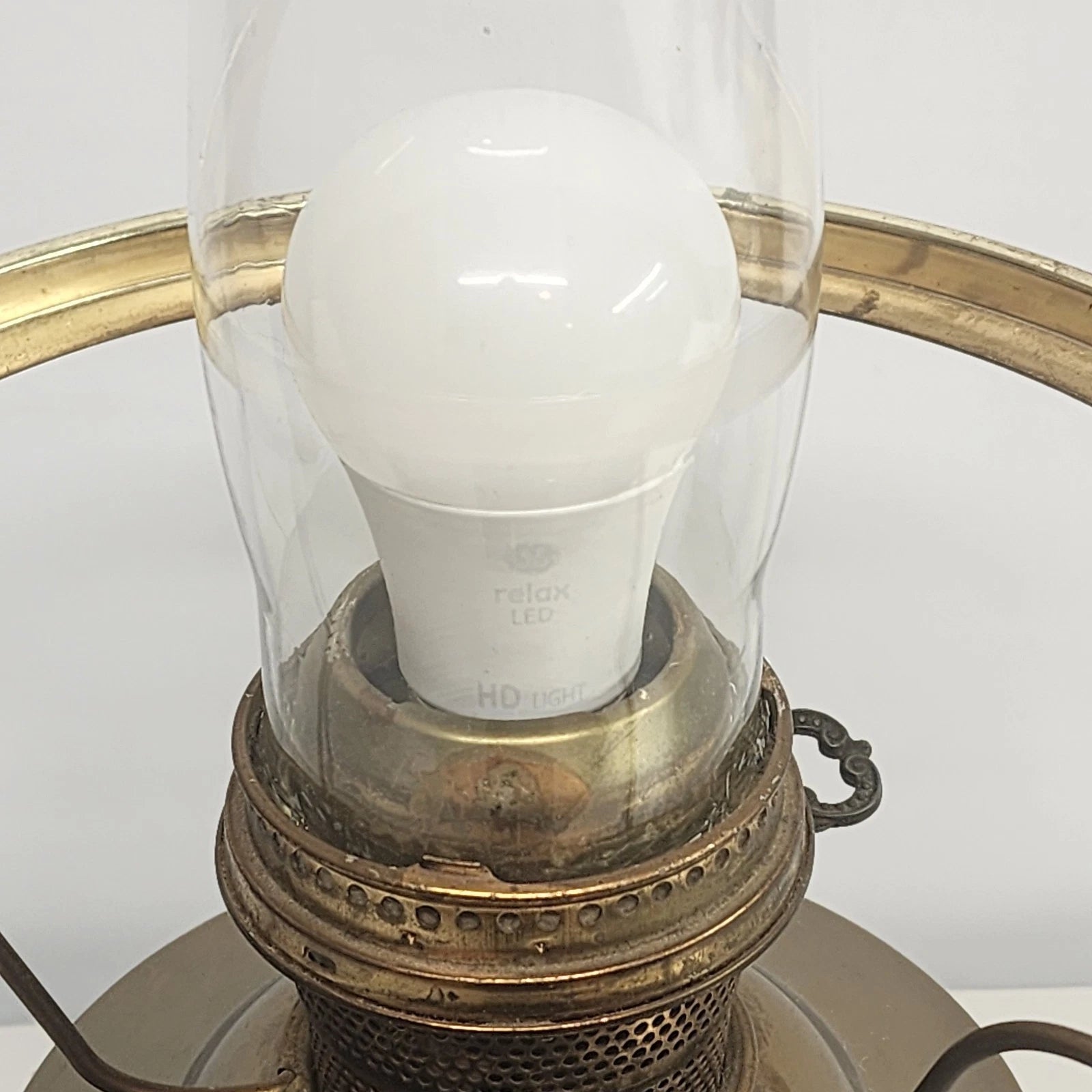 Aladdin Kerosene-Electric Mantle Lamp Solid Brass Crystal Dogwood Glass Shade