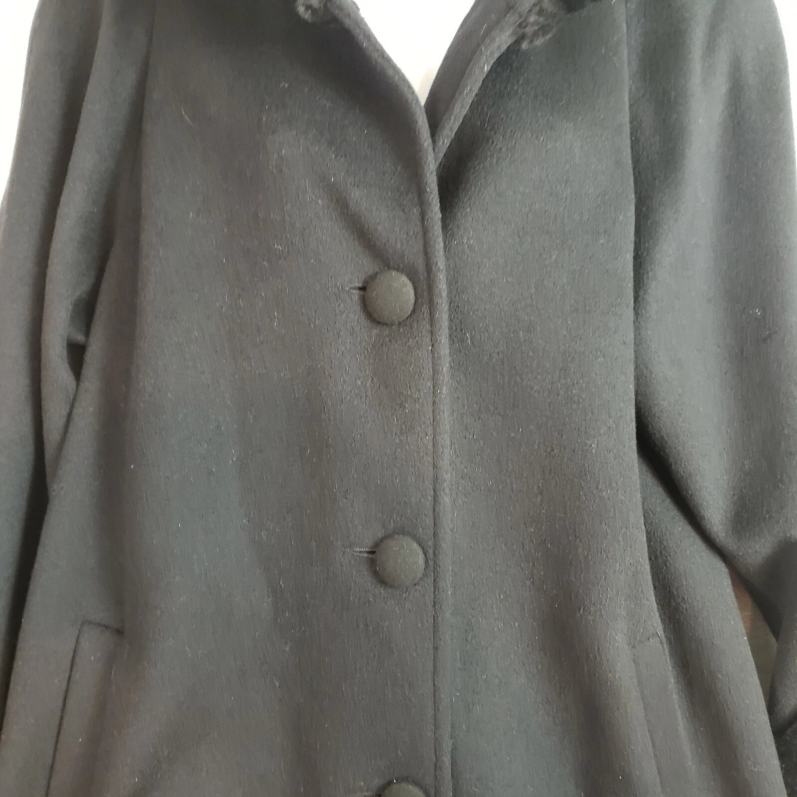 Step out in timeless elegance with this Albert Nipon Boutique vintage black maxi coat, crafted from 100% wool and accented with luxurious faux fur trim. The 3" collar and 4" cuffs add sophistication, while the smooth acetate lining ensures comfort. Perfect for formal occasions or cold-weather chic.