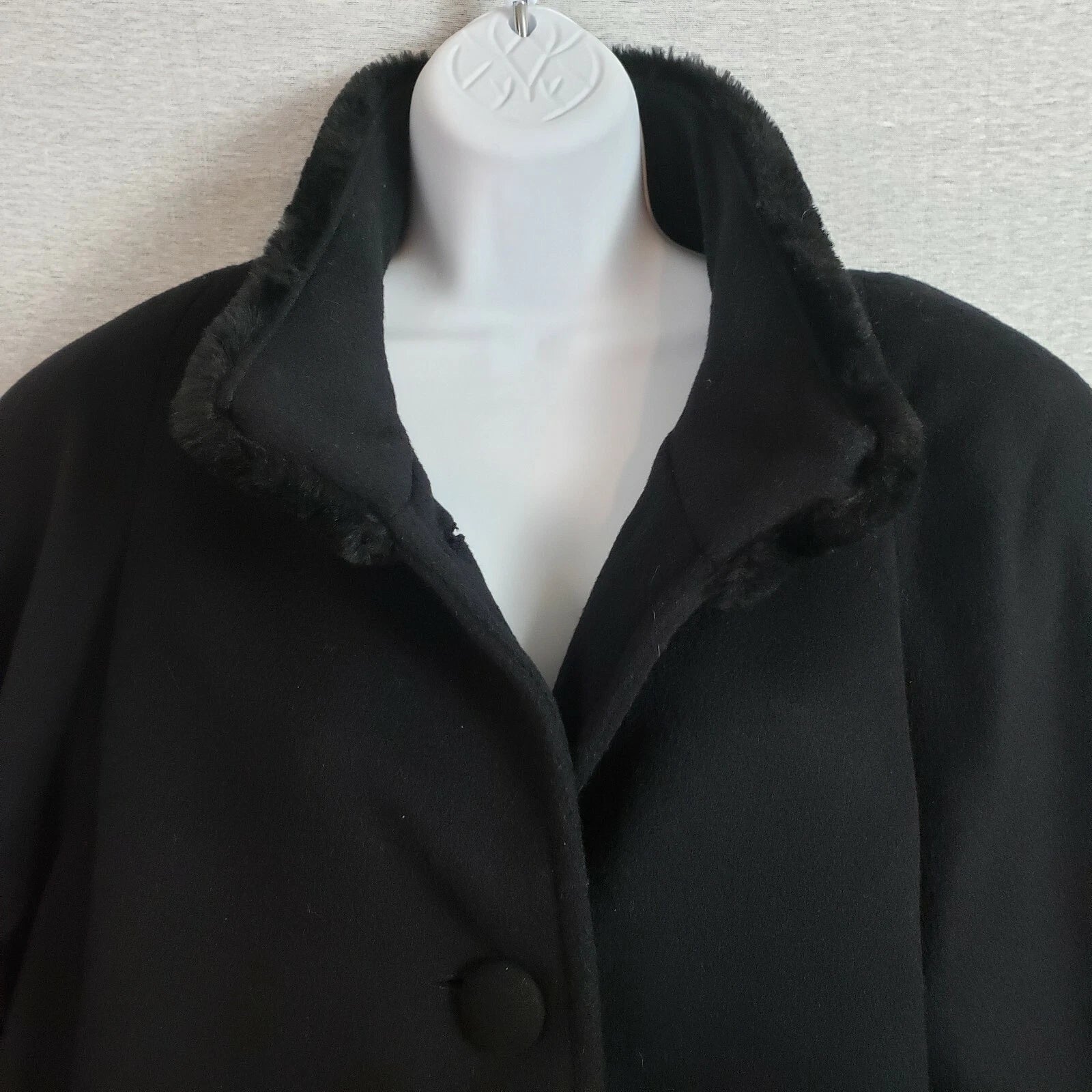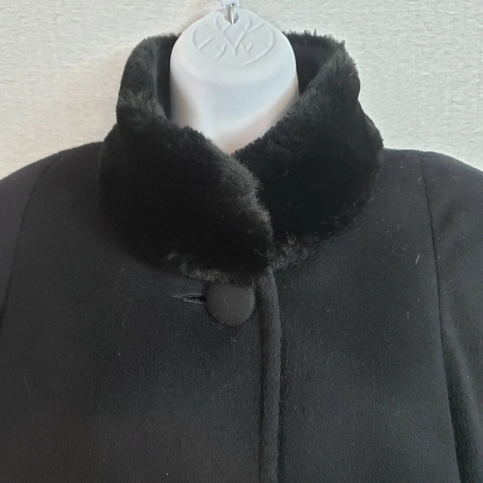 Albert Nipon Black Wool Maxi Coat Faux Fur Collar Cuffs Size 10 Vintage Elegant