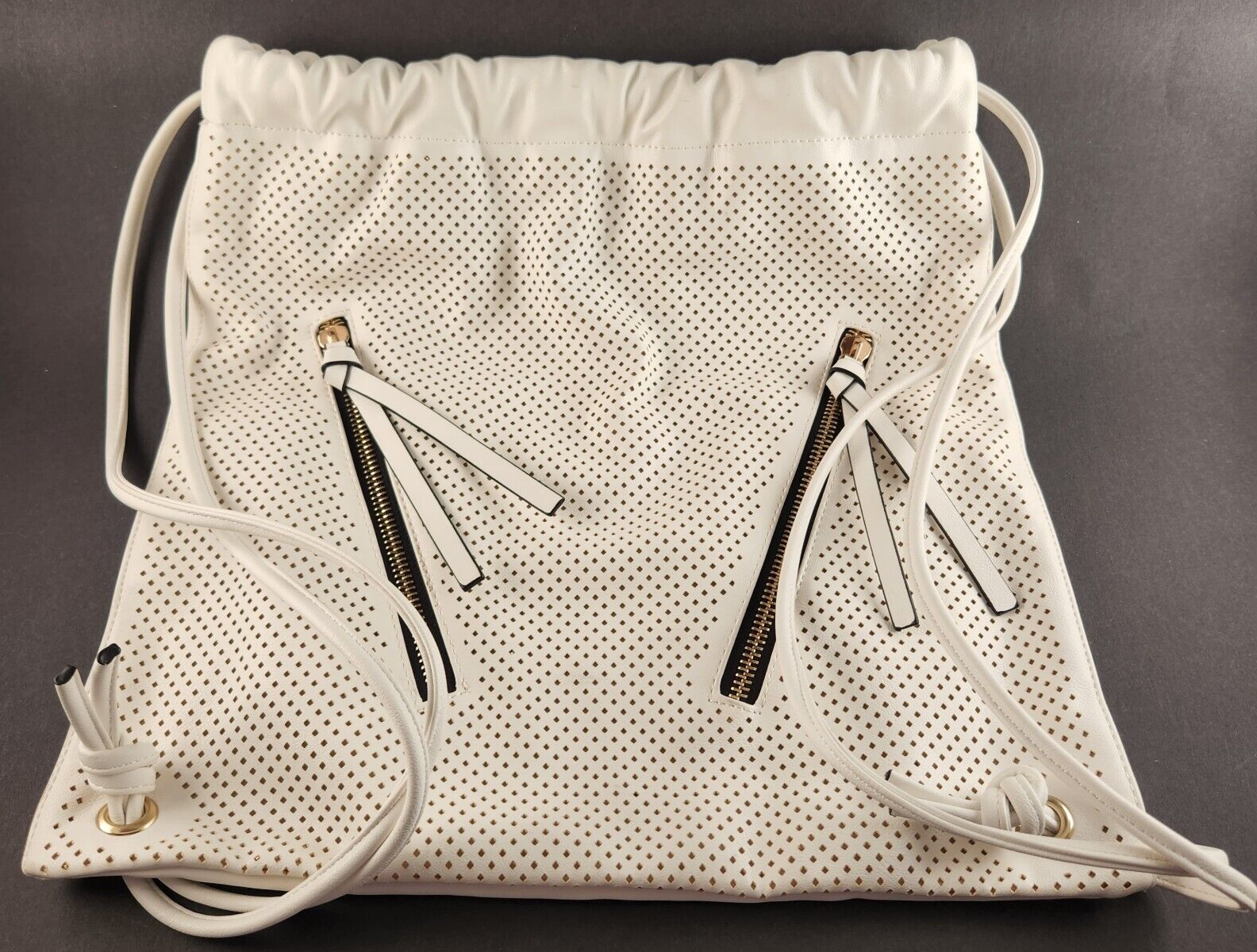 ALDO 15" White and Black Drawstring Backpack Zipper Pockets Drawstring Closure