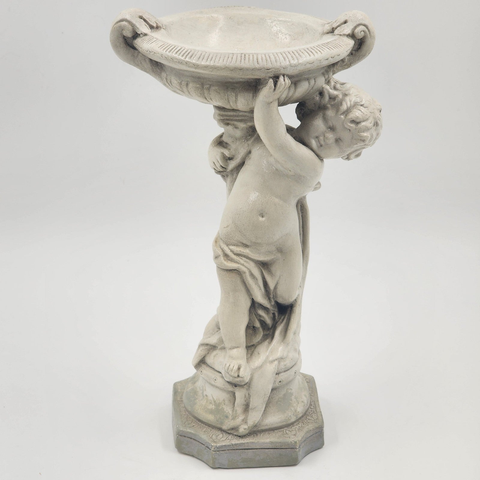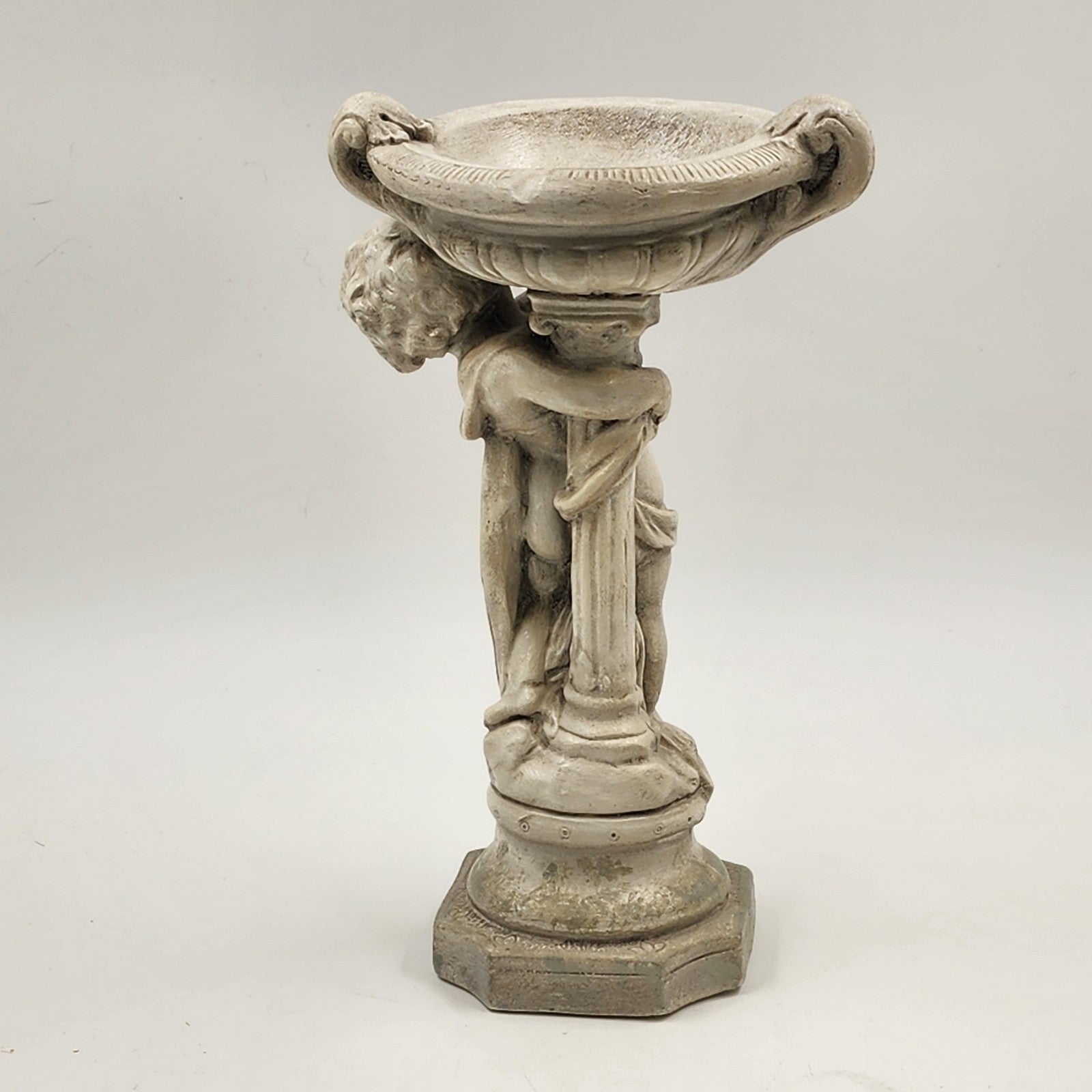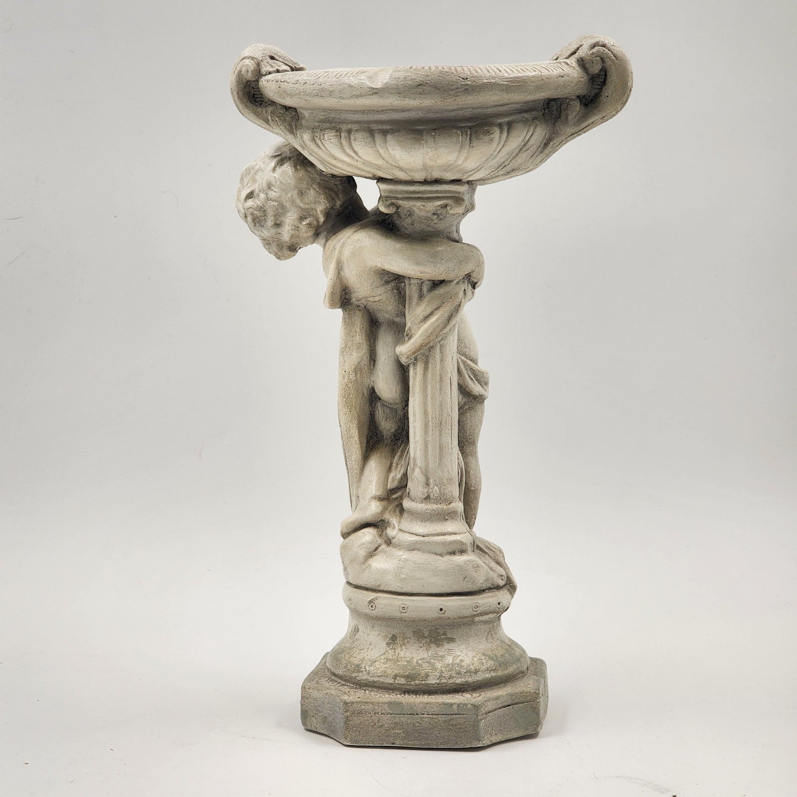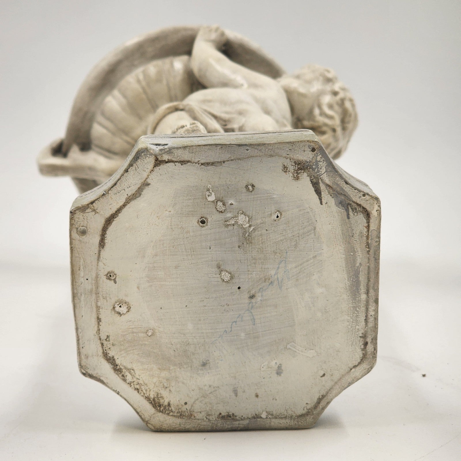 Alexander Backer Chalkware Cherub Angel Statue w/ Bowl Pedestal Ceramic 12" 1940