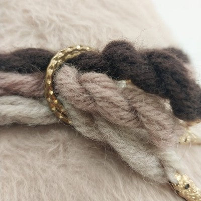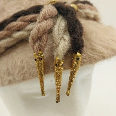 Aloska Cloche Beige Hat w Brown Black Tan Twisted Rope Trim & Gold Tone One Size