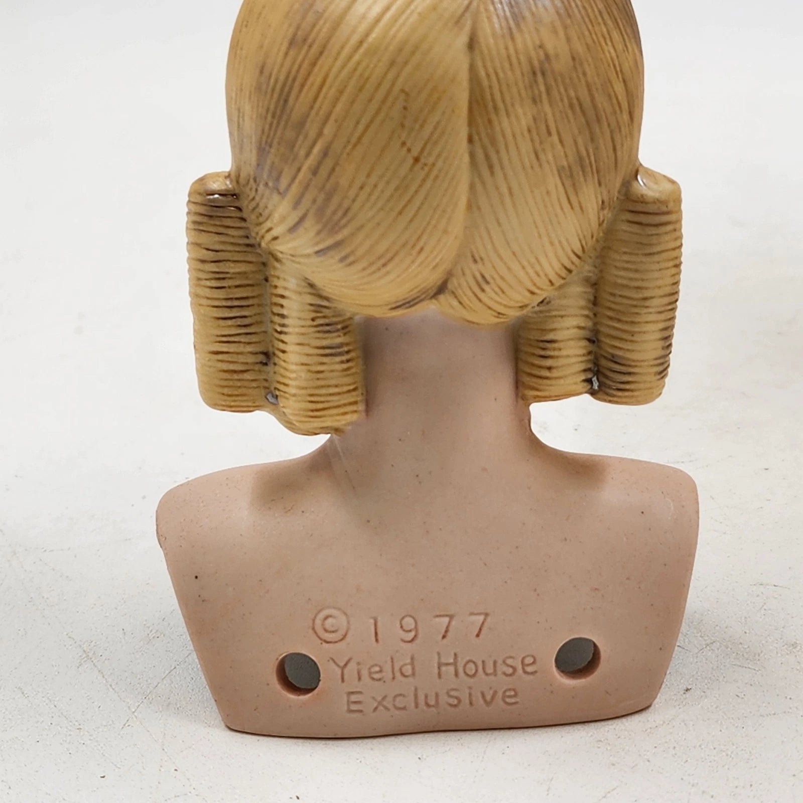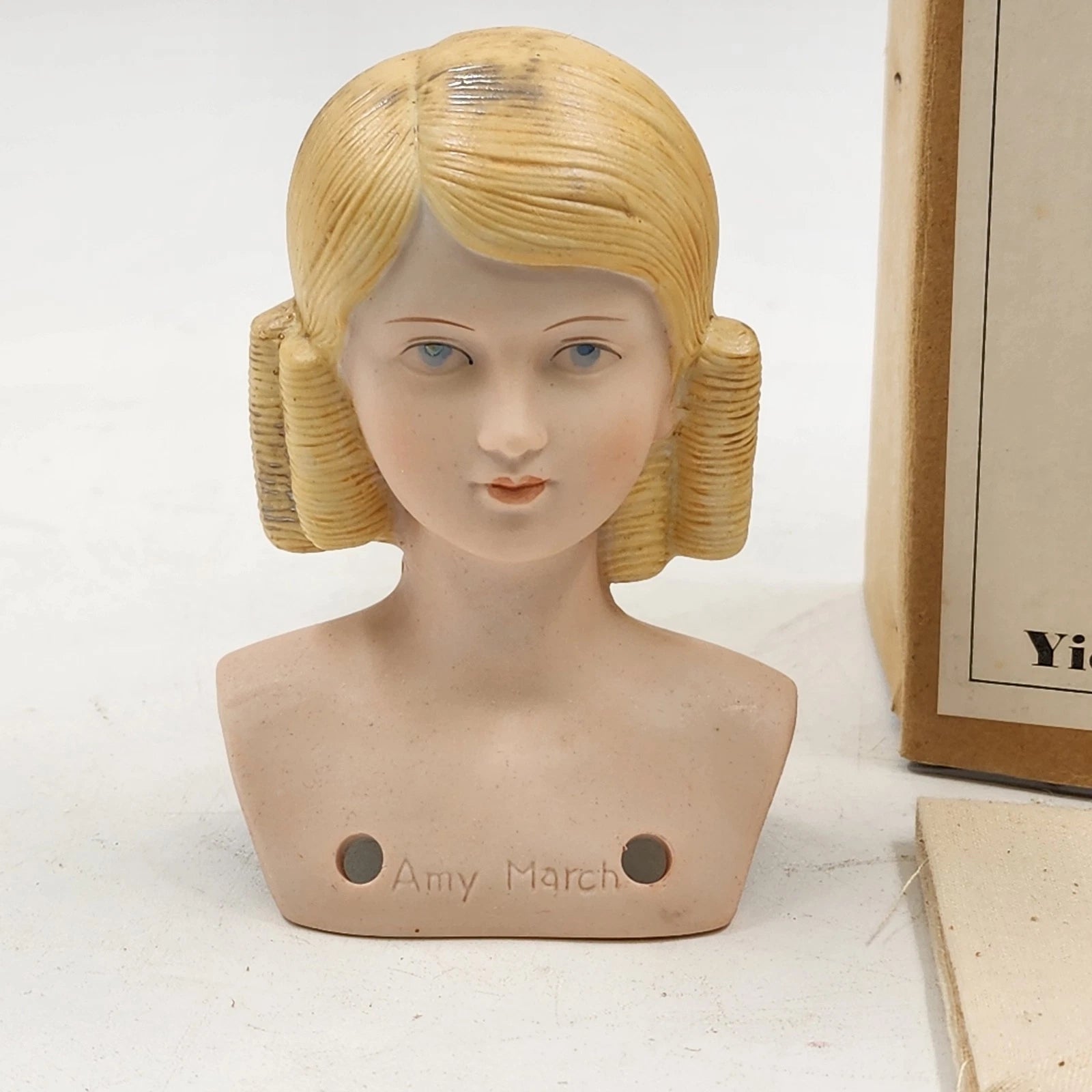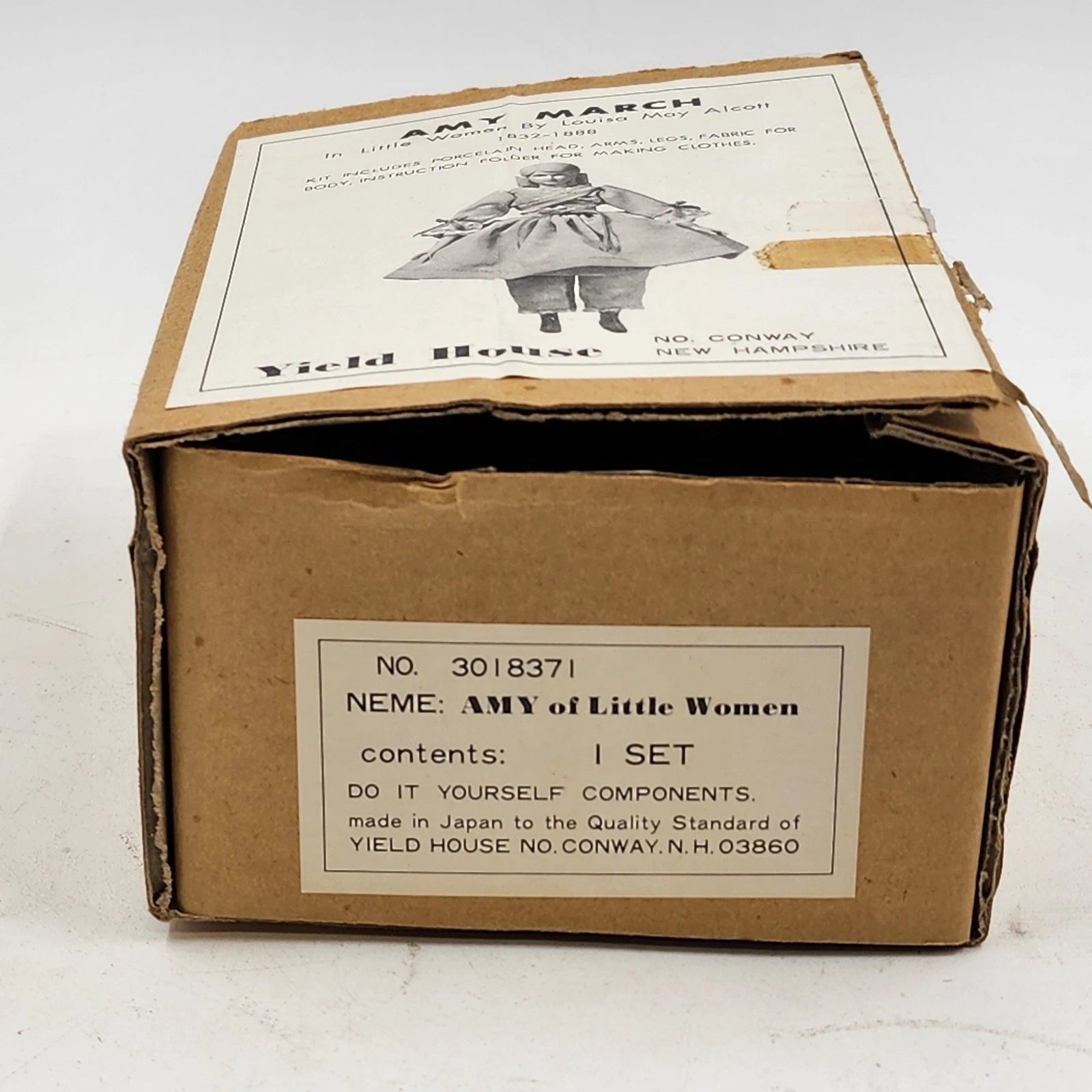 This vintage doll kit from Yield House features Amy from Little Women, crafted in bisque porcelain. The kit includes the head, arms, legs, and body fabric, allowing you to assemble and create a classic collectible doll with timeless charm. Perfect for doll makers and collectors.