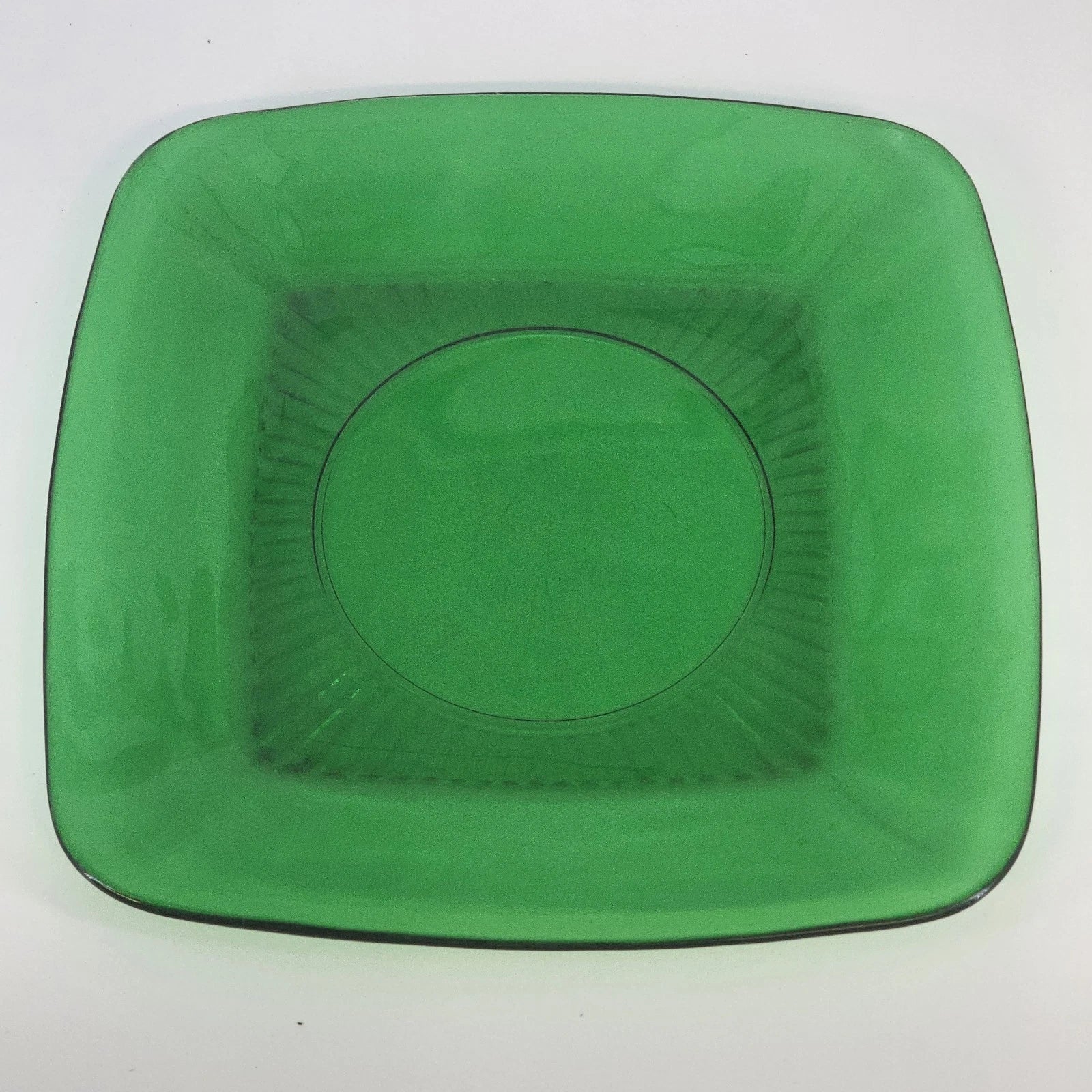 Anchor Hocking Charm Forest Green Square Luncheon Plate 8.25" Collectible Glass