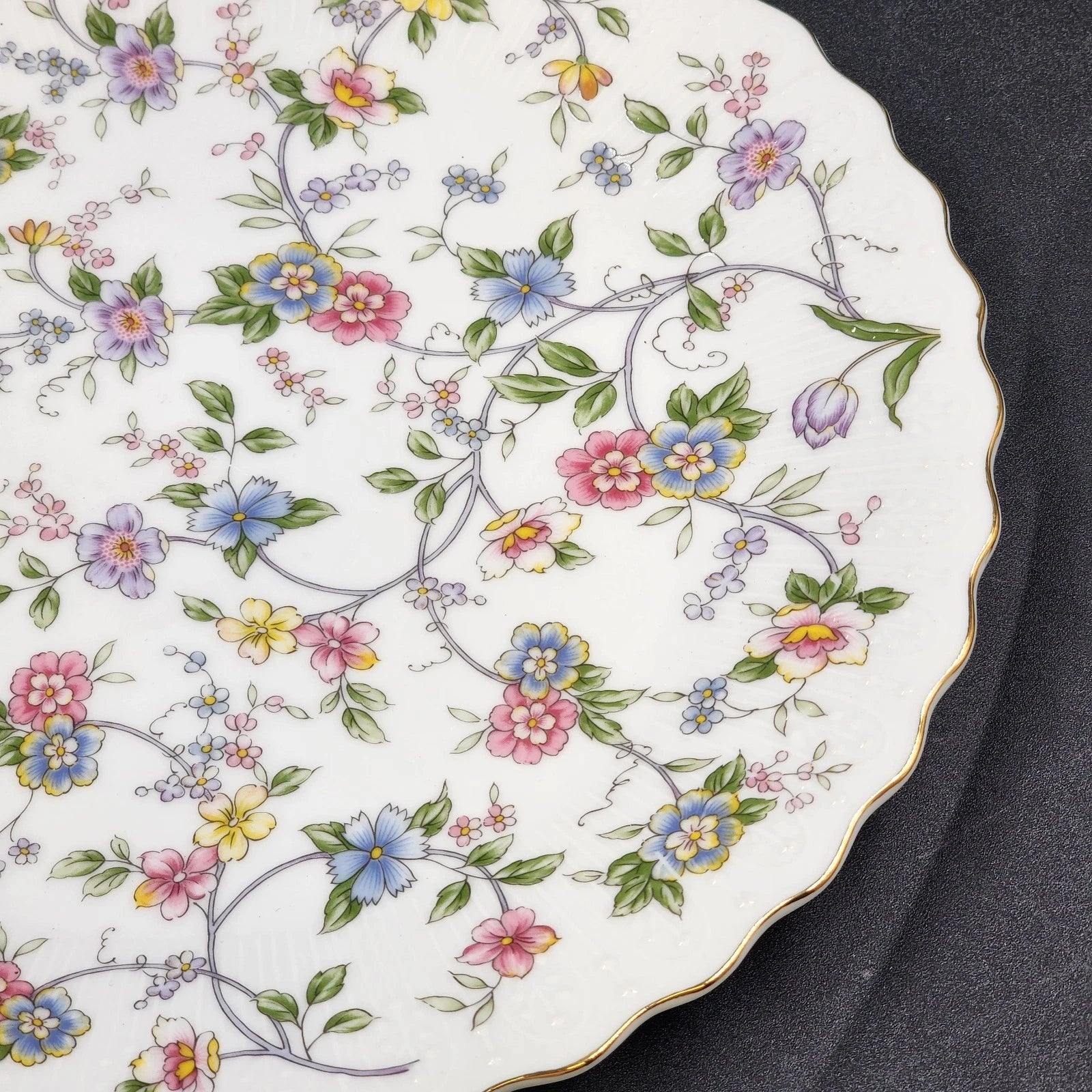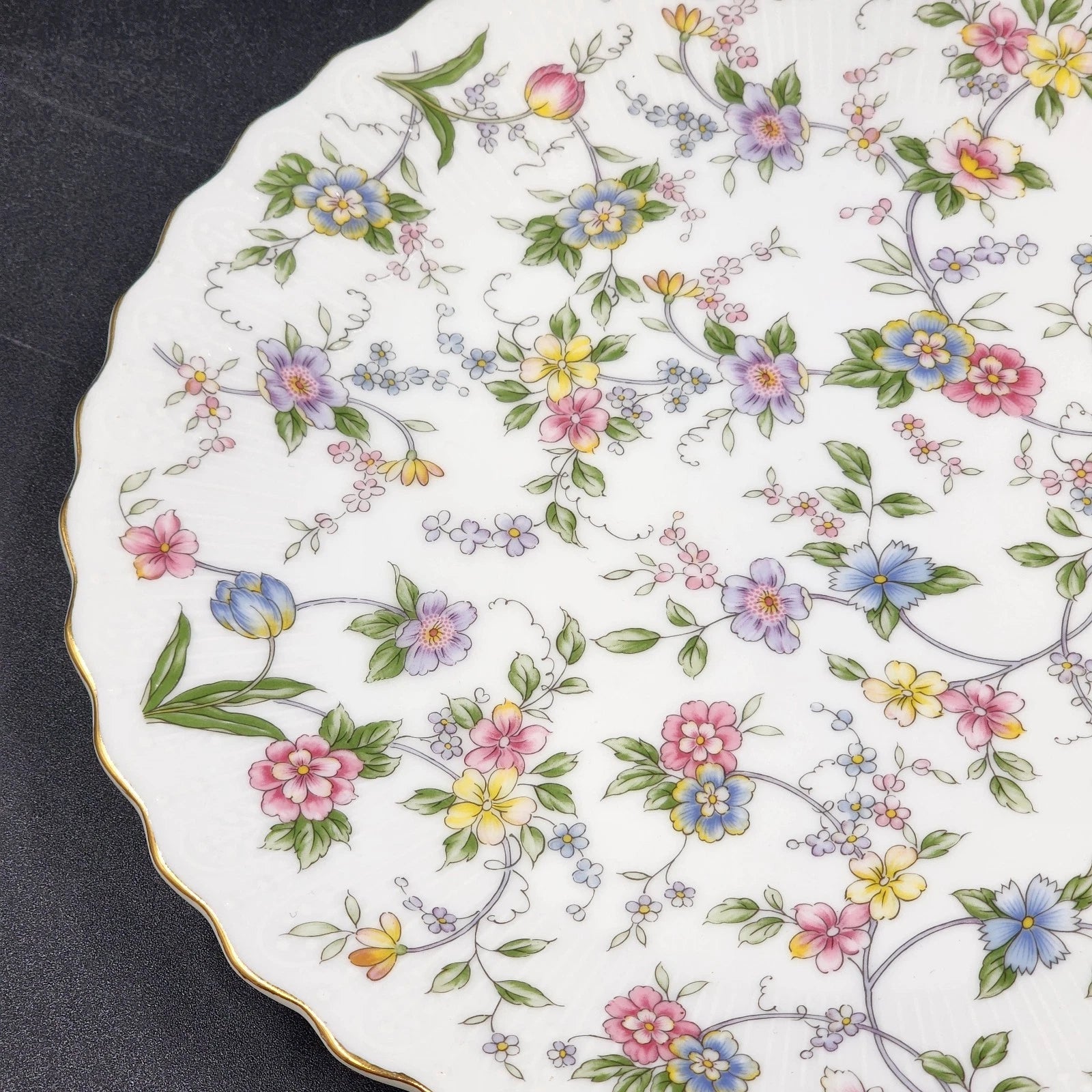 Andrea by Sadek Cake Platter Corona Floral Gold Trim Scalloped Edge 10.5"