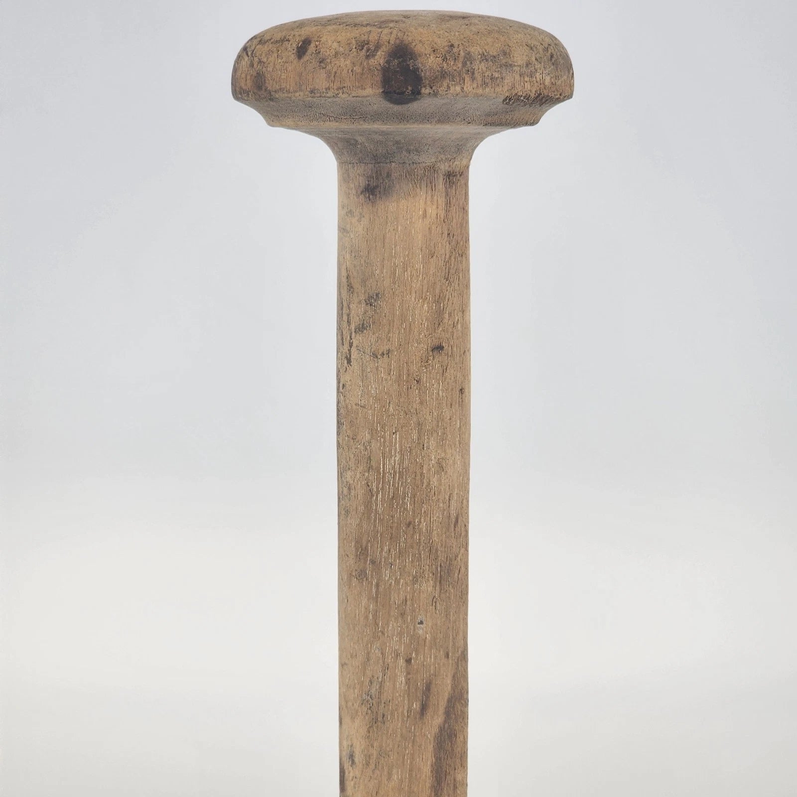 Add a touch of authentic industrial history to your home with this antique wooden textile spool. Once a hardworking component in an early 20th-century American mill, this 11.5-inch bobbin has transitioned from the factory floor to a stunning piece of rustic decor. The wood features a beautiful aged patina, earned through decades of spinning thread and yarn. Whether you are a collector of primitive sewing tools or looking for a unique "Found Object" to style on a bookshelf or mantle, this oversized spool offers a perfect blend of textile heritage and industrial charm.