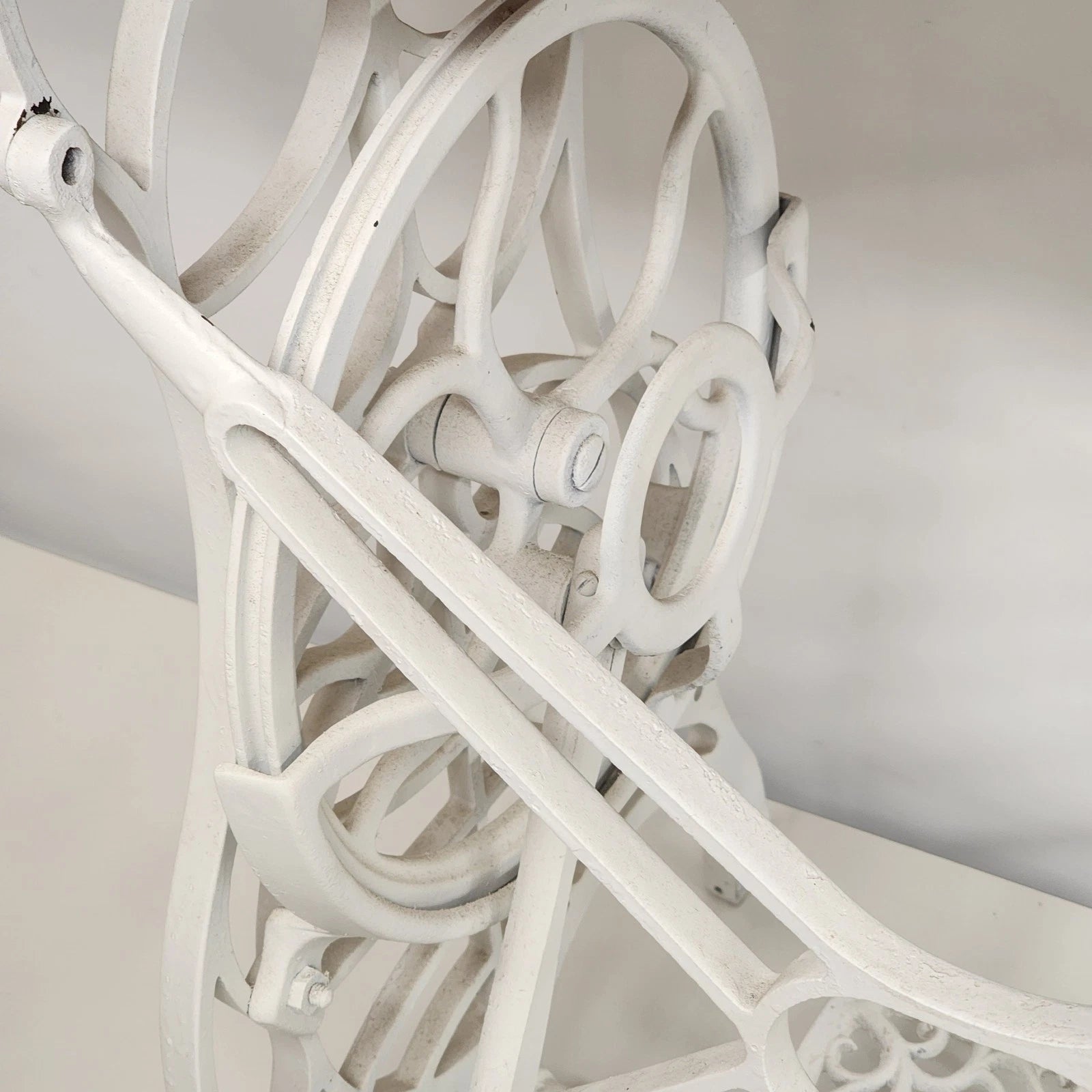 * Features: Original ornate ironwork, foot treadle, and drive wheel