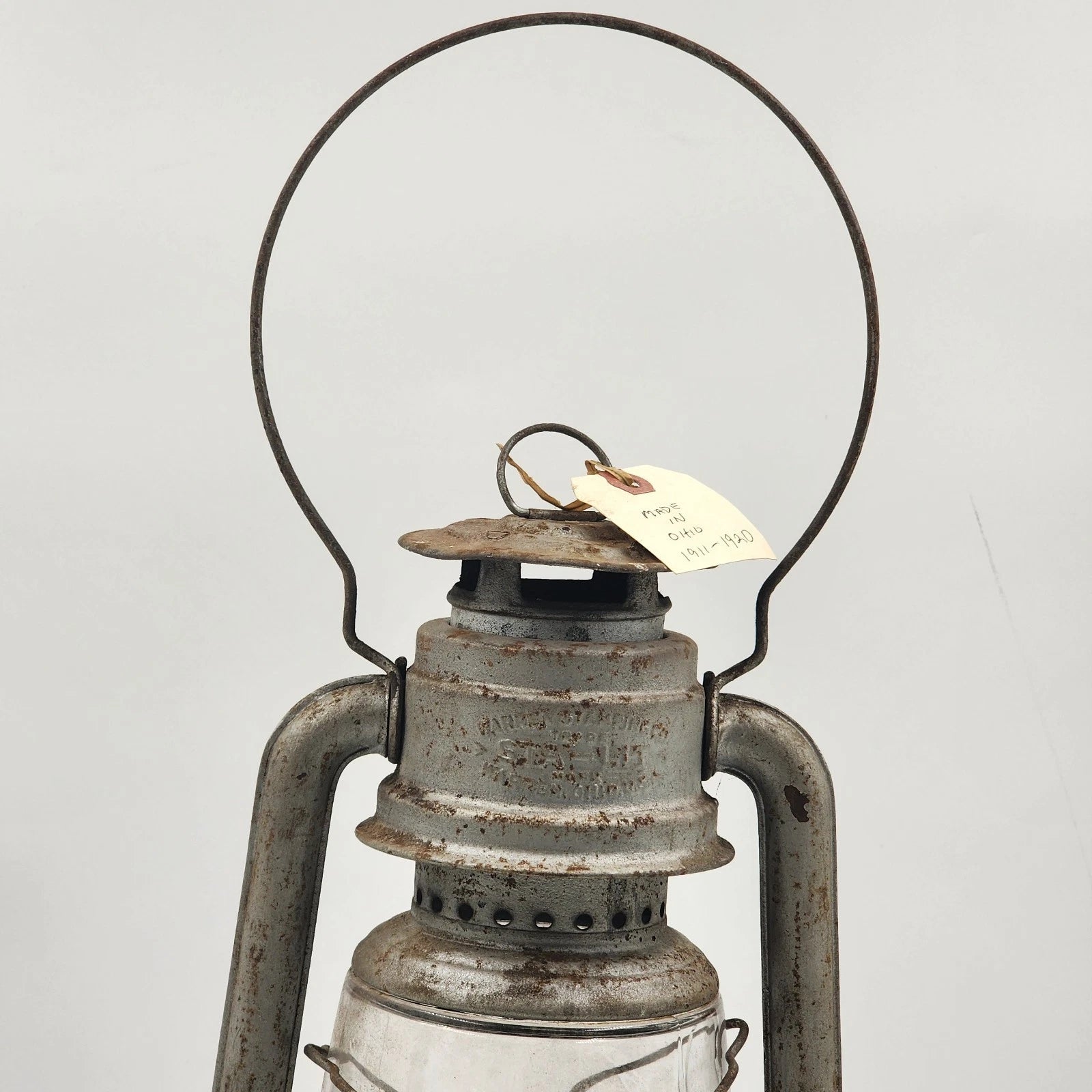 This is a genuine Antique Sta-Lit Kerosene Lantern, manufactured by Warren Stamping. This piece is a fantastic example of historical lighting, often used in barns, shops, or for general utility.