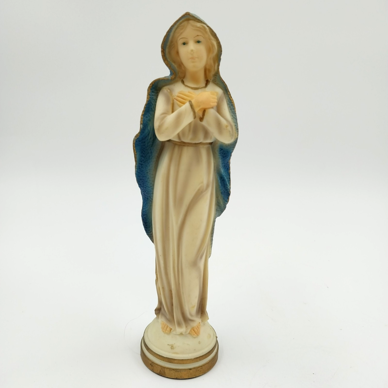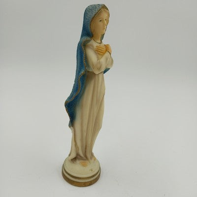 ARA 8" Madonna Virgin Mary Figurine White Plastic Blue Veil Vtg