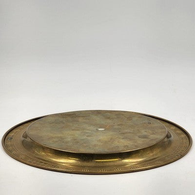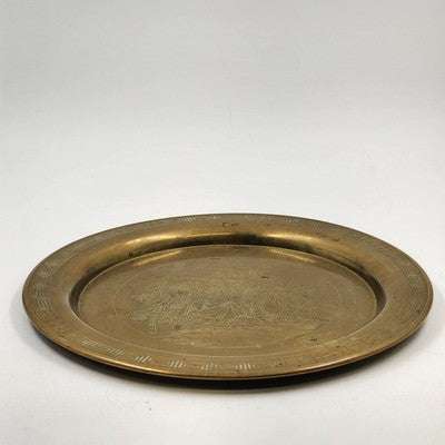 This vintage engraved brass serving tray features beautiful etched detailing of women in traditional design, making it a versatile piece for serving, wall art, or display.