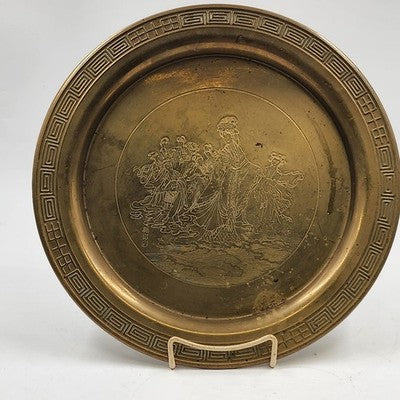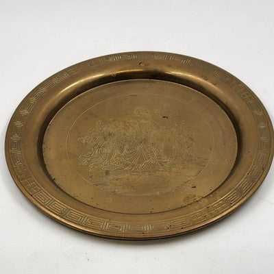 Asian Engraved Brass Serving Tray 12.75" Etched Women Hong Kong Wall Art