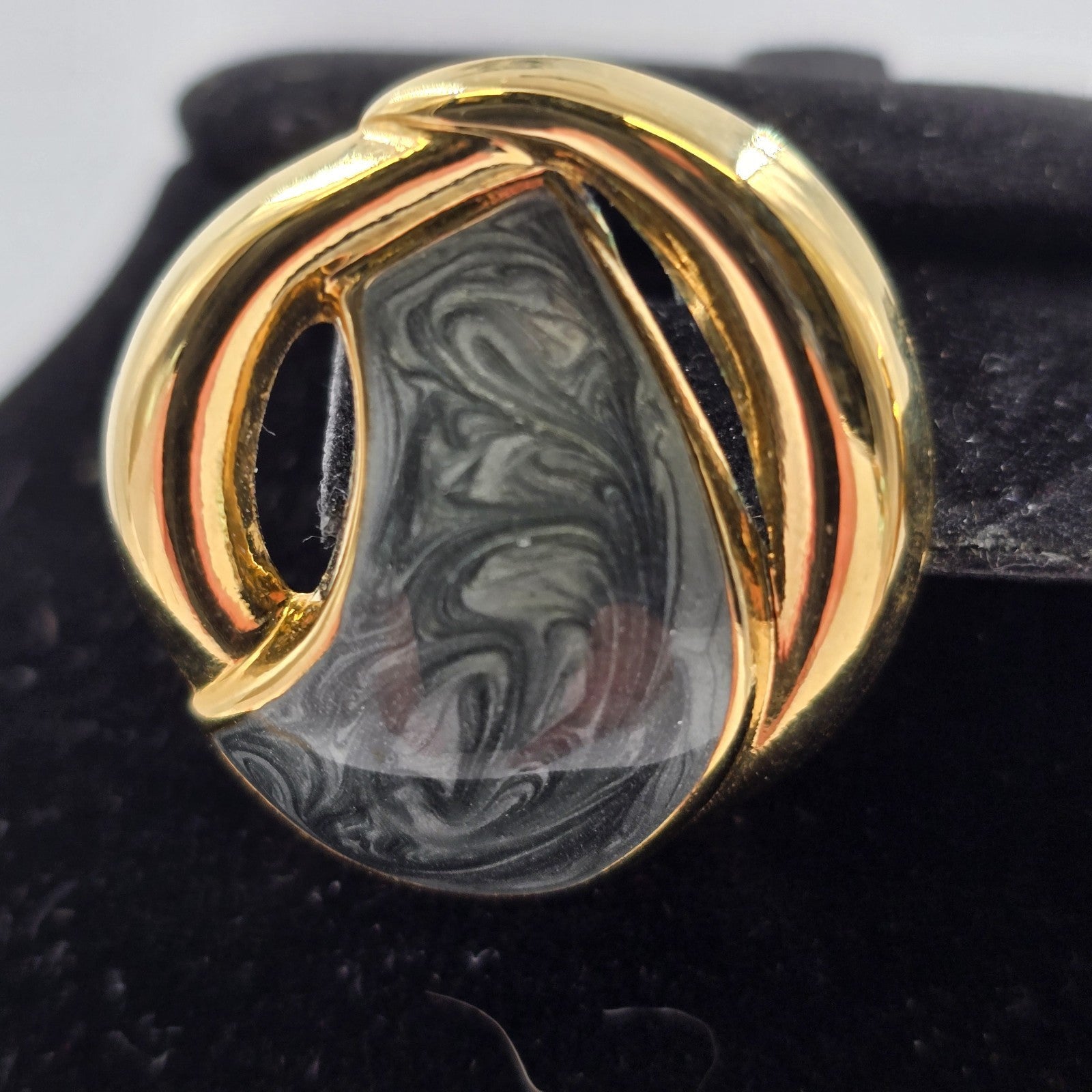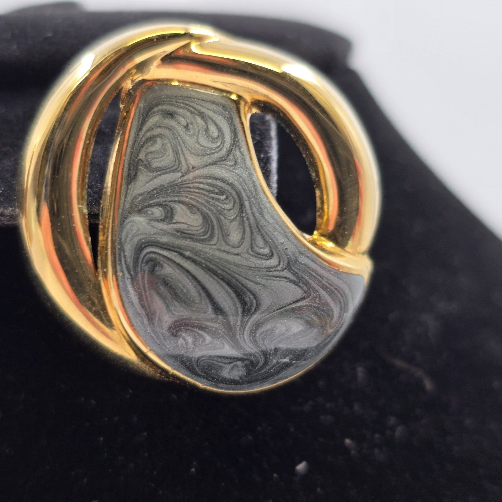 * Gold tone with burgundy red and marbled gray enamel designs.
