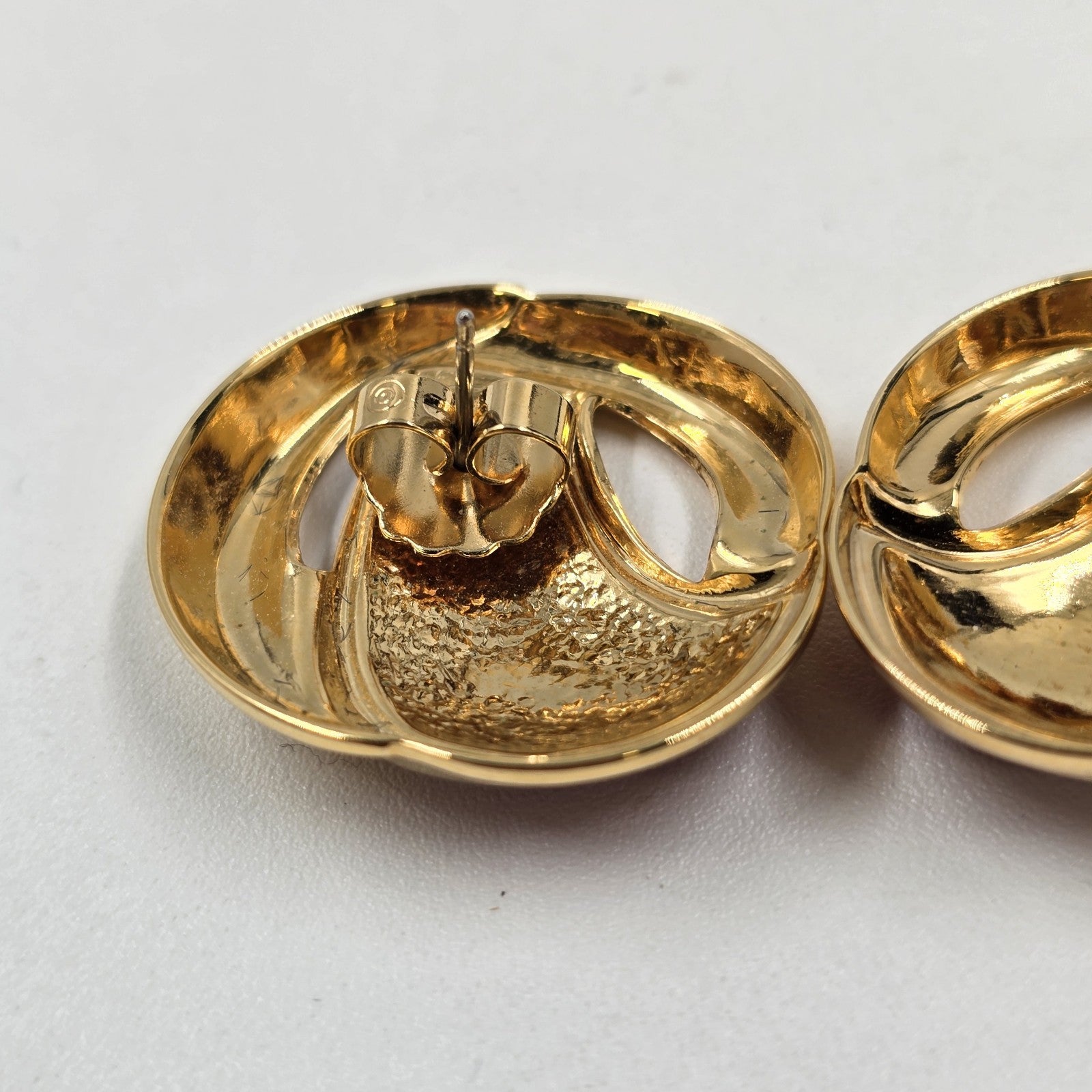 Both pairs of earrings are crafted with a classic round shape and come with butterfly push-back closures for secure and comfortable wear. These earrings measure approximately 1 1/8 inches in diameter, making them the perfect accessory for various occasions, from casual outings to formal events.
