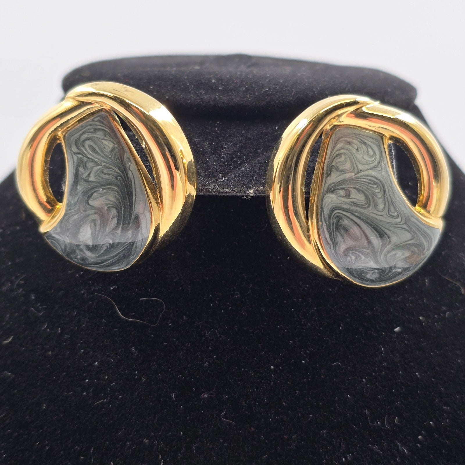 * Pair 2: Gold tone with a marbled gray enamel finish, featuring a sophisticated and versatile neutral tone.