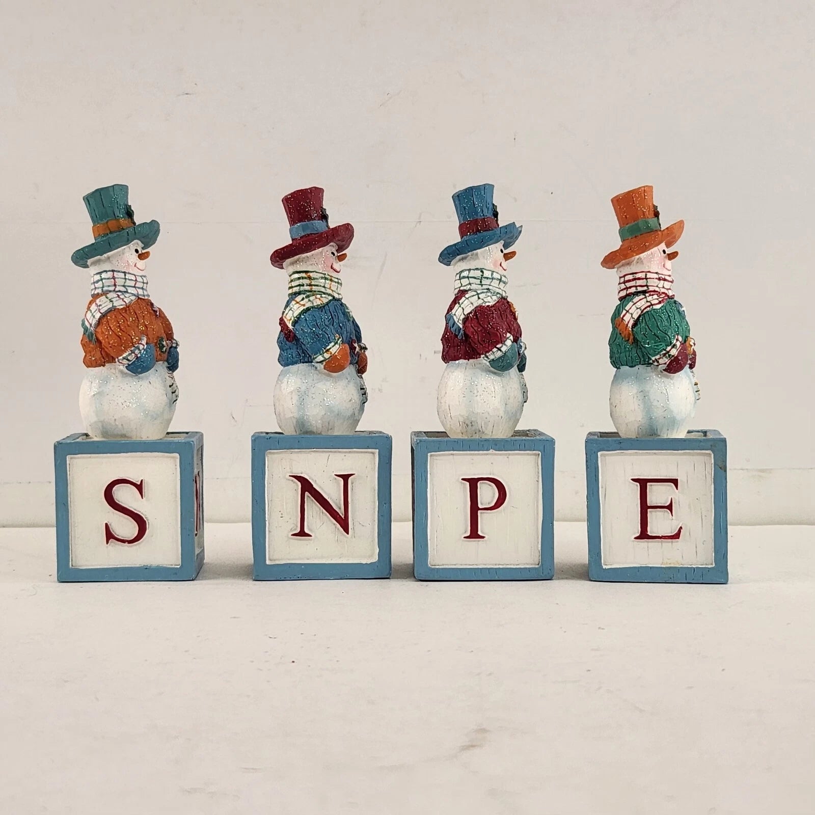 Design: Snowman-themed spelling blocks (JOY, NOEL, HOLY, HOPE)
