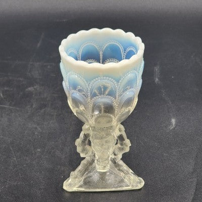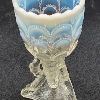 Beads & Bark by Northwood White Opalescent Novelty Vase Goblet Ca. 1903 Antique
