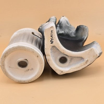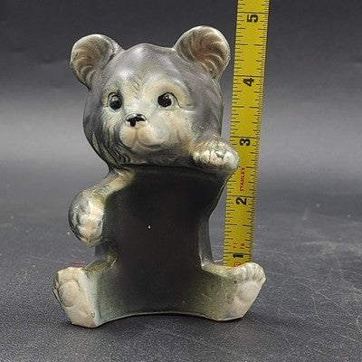 Bear Trash Can Salt Pepper Shakers Plastic Stopper Japan Chalk Ware Ceramic 4.5"