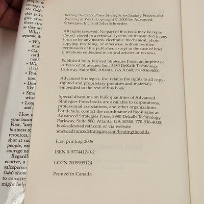 Beating the Odds Poker Strategies Leading Project Winning At Work John Schroeder
