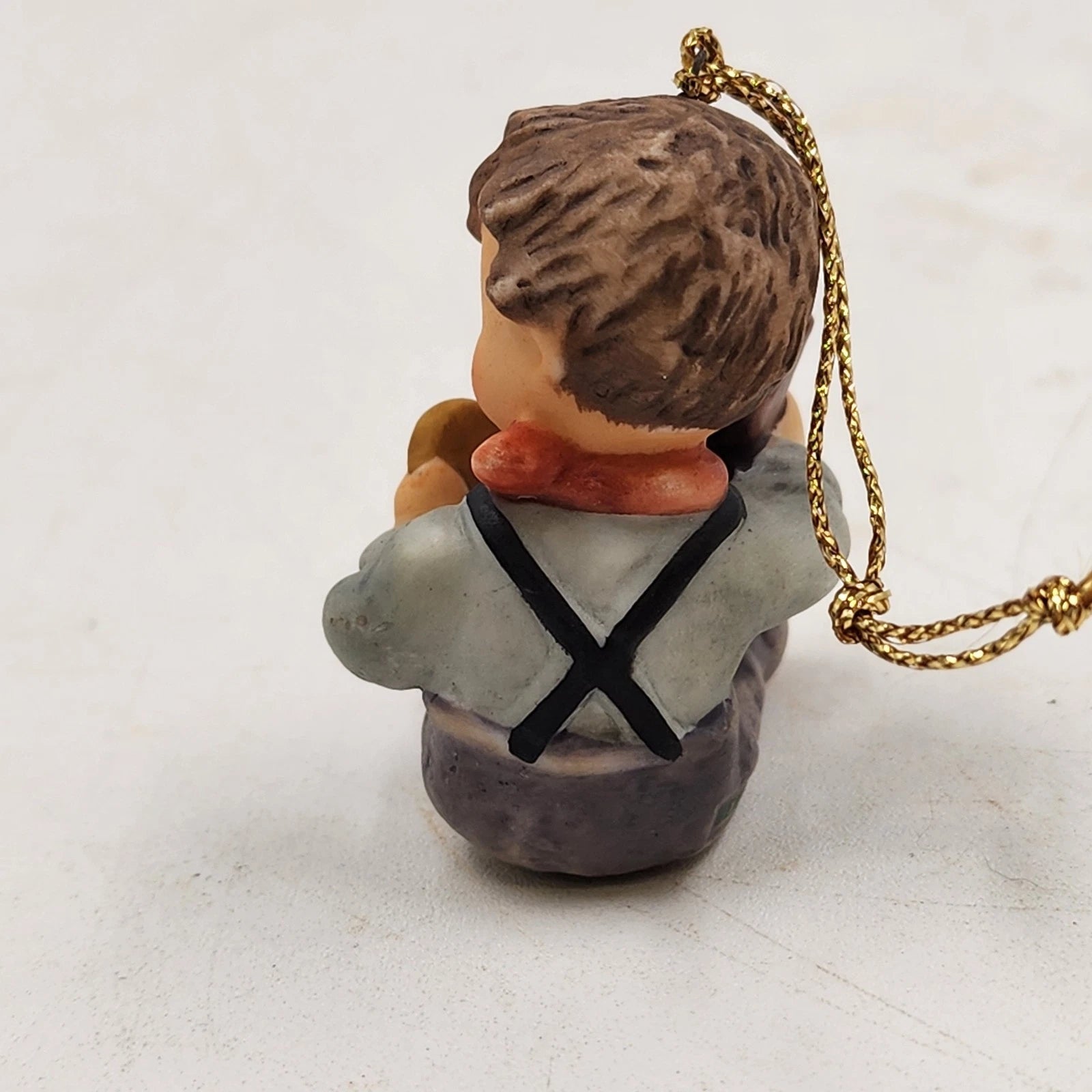 Berta Hummel CHRISTMAS TREATS Ornament 1999 Goebel Boy Dog Porcelain 1.75"