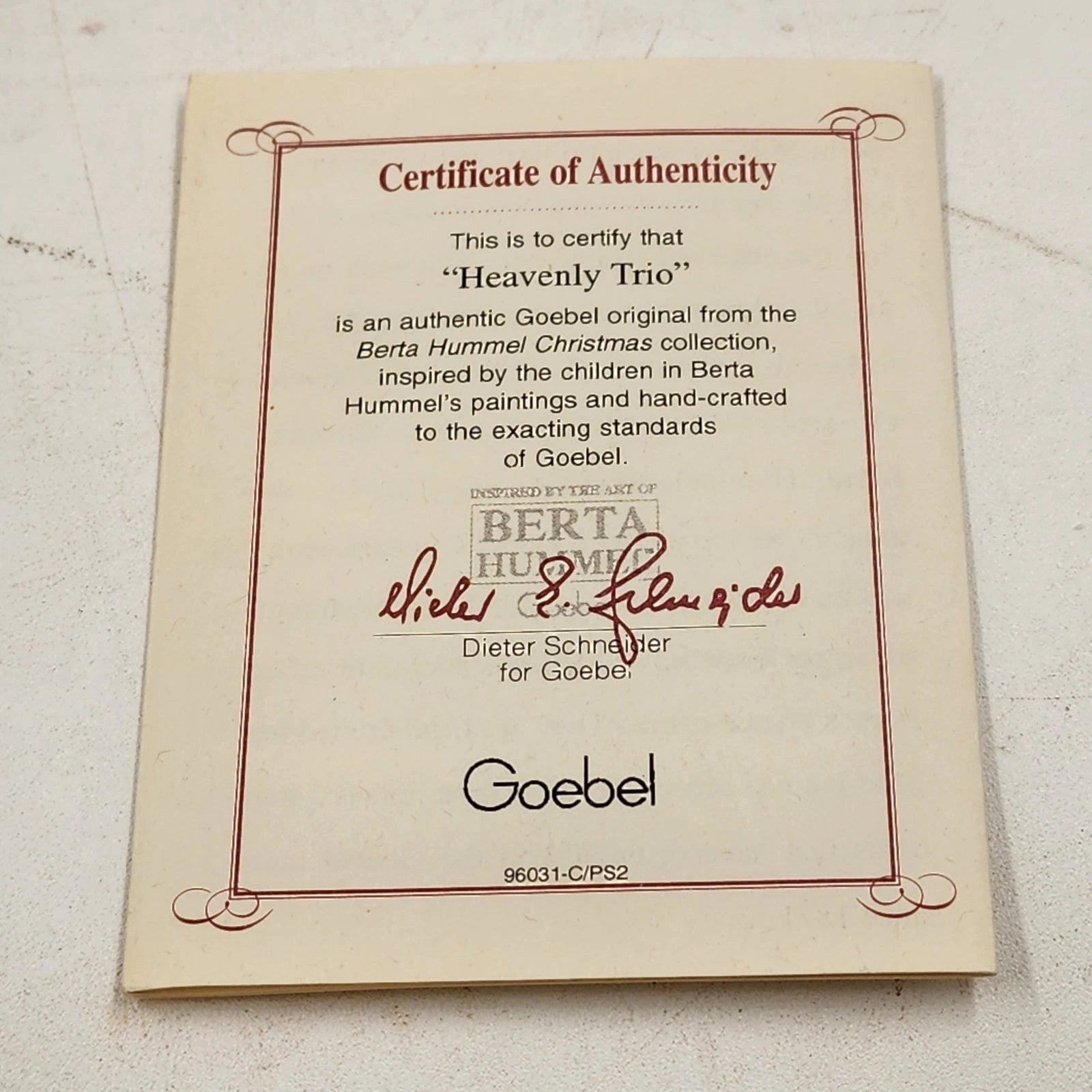 Berta Hummel HEAVENLY TRIO Ornament 1997 Goebel Carolers Cardinal Porcelain 3"