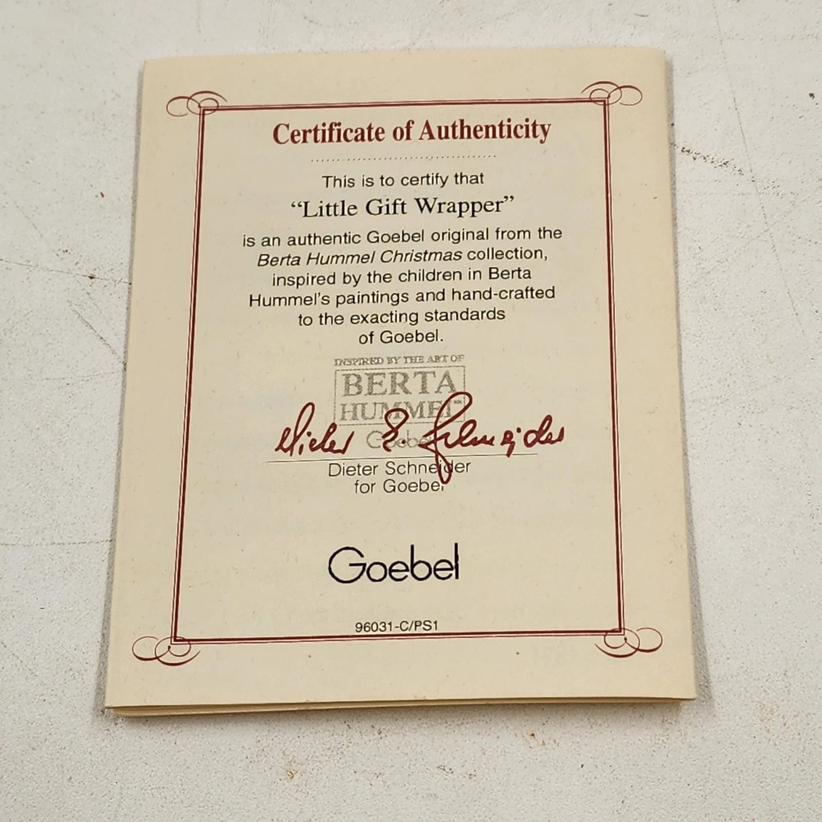 Berta Hummel LITTLE GIFT WRAPPER Ornament 1997 Goebel Porcelain Christmas