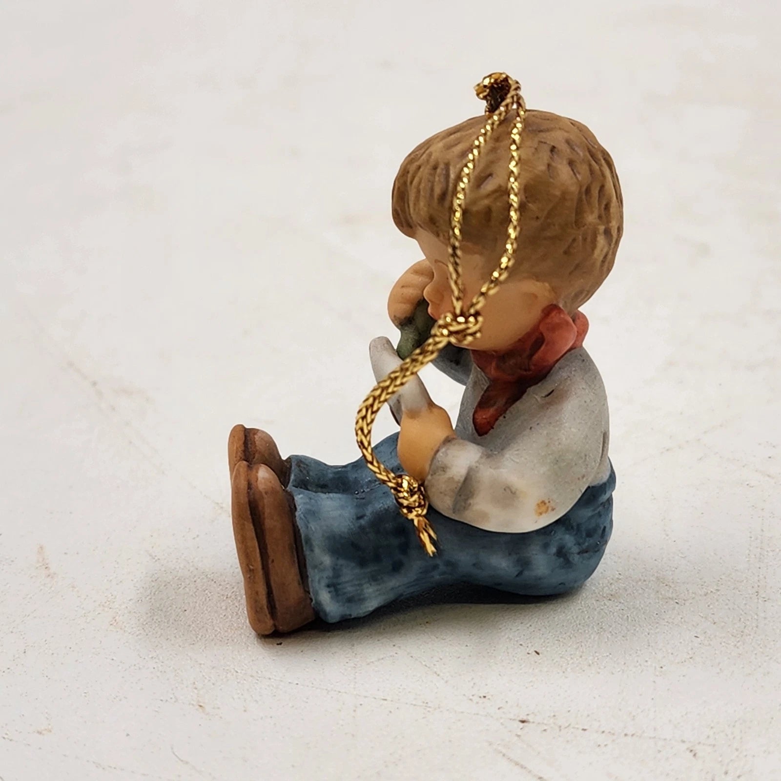 This precious collectible ornament, "A North Pole Address," is a beautiful piece from the "A Berta Hummel Christmas" collection. Created by the German company Goebel, the figurine captures a nostalgic scene of a young boy writing a letter to Santa Claus.