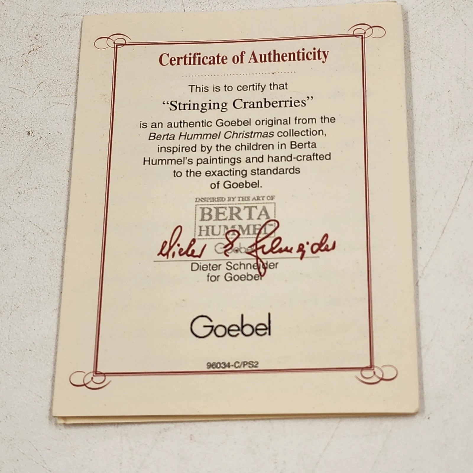 Berta Hummel STRINGING CRANBERRIES Ornament Goebel BH-45 Retired 2.75" 1997