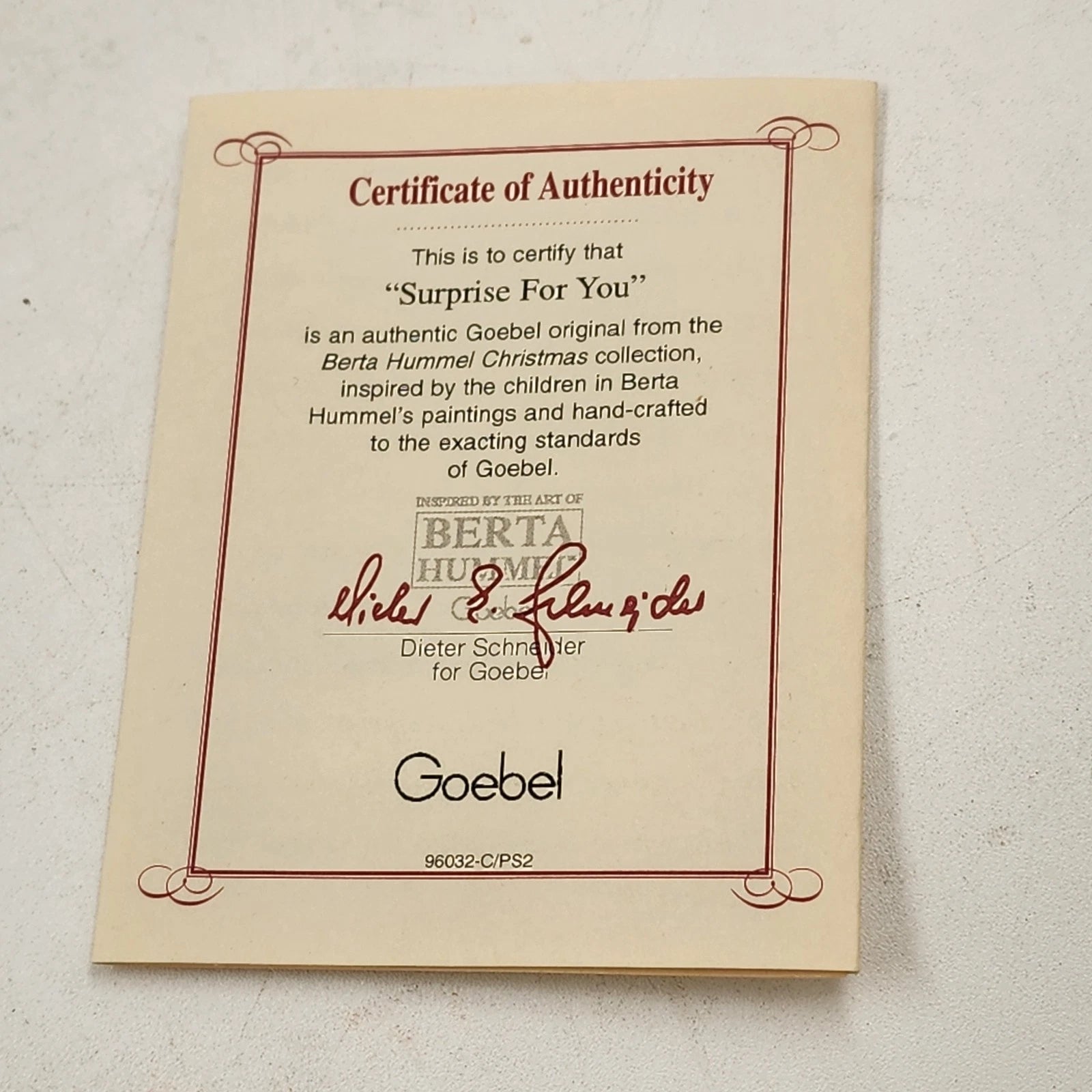 Berta Hummel SURPRISE FOR YOU Ornament 1997 Goebel BH-49 Porcelain 2.75"