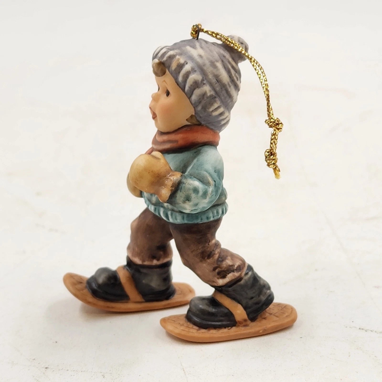 The ornament depicts a young boy wearing winter clothes and snowshoes. It was officially released in 1999 and is typically made of fine ceramic or porcelain.