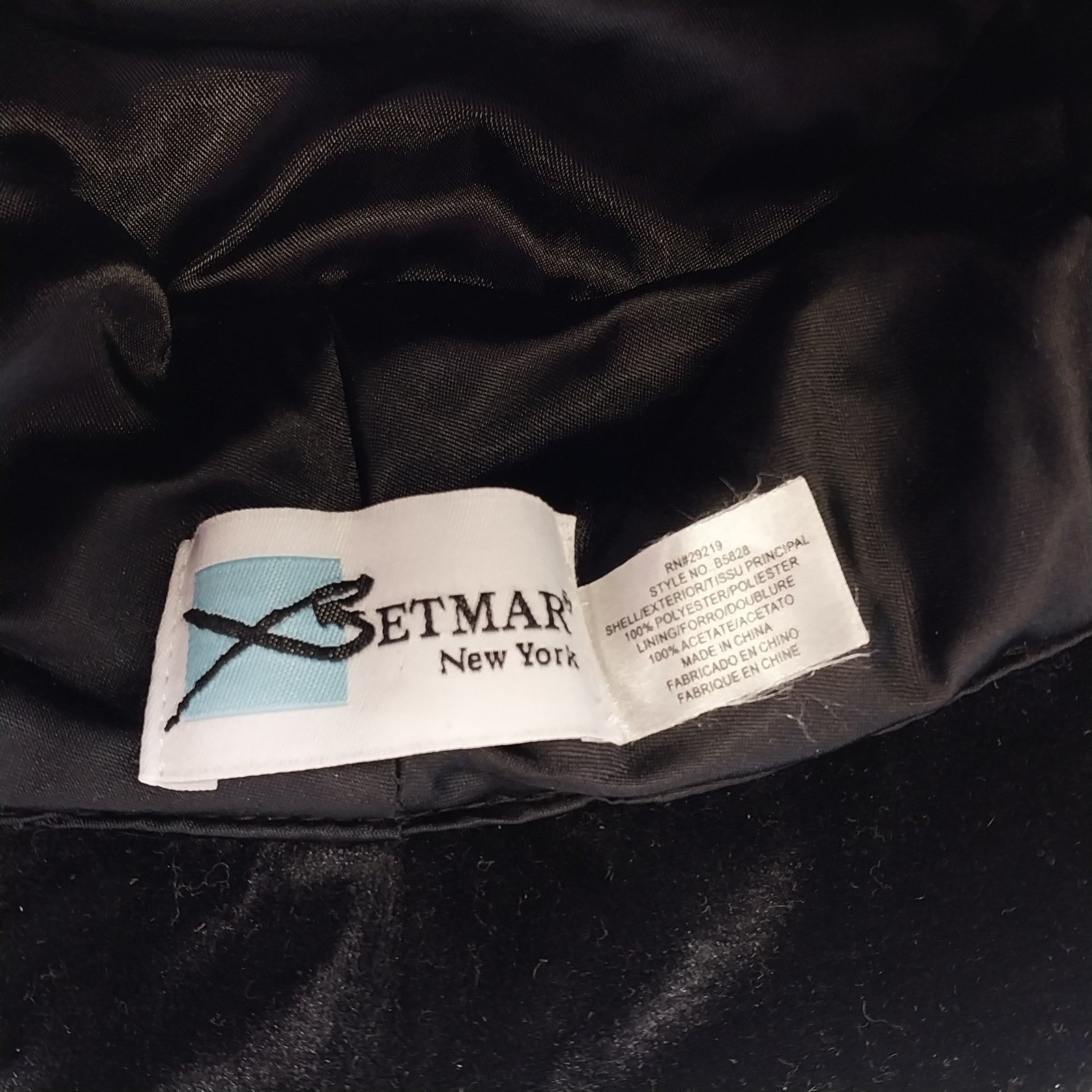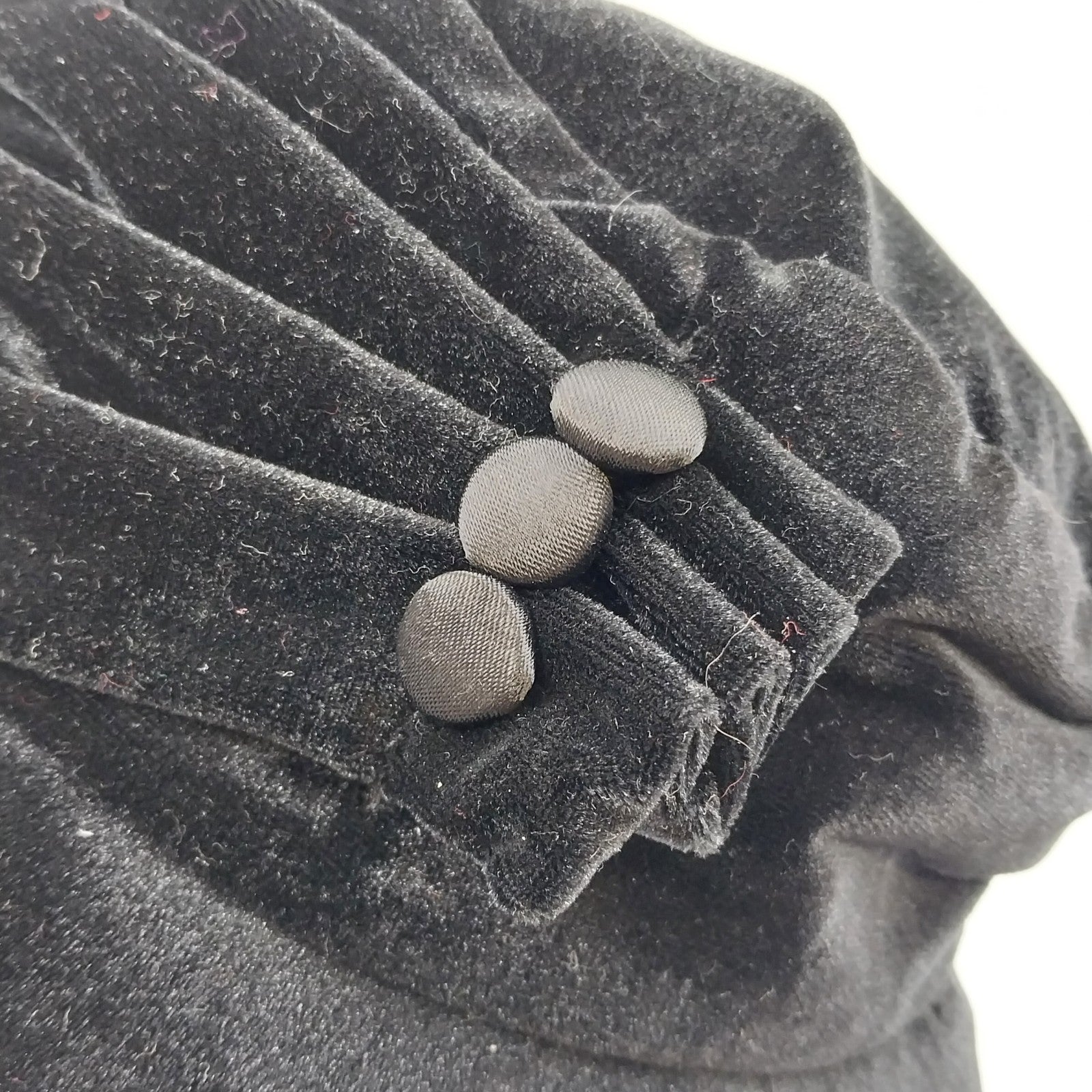 Betmar Black Cloche Velvet Hat Bucket Ruched with Button 100% Polyester New York