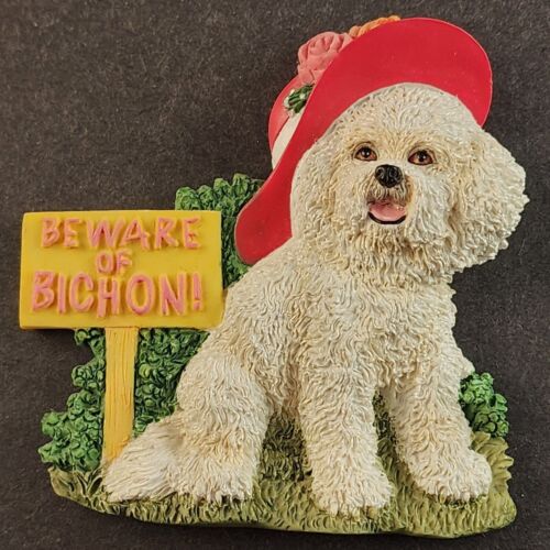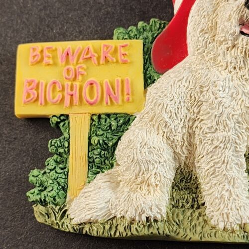 Bichon Frise Refrigerator Magnet Beware of Bichon Dog Figurine Willabee Ward MBI