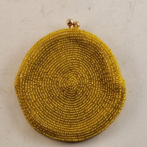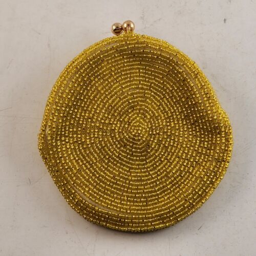 Black Cat Glass Beaded Coin Purse Korea Kiss Close Gold Beads Vintage 1960s 4"