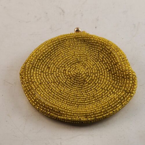 Black Cat Glass Beaded Coin Purse Korea Kiss Close Gold Beads Vintage 1960s