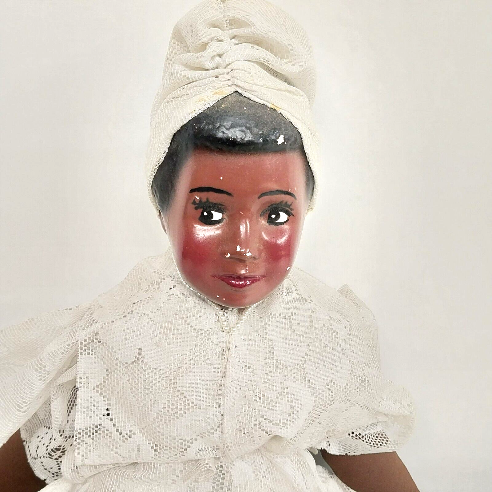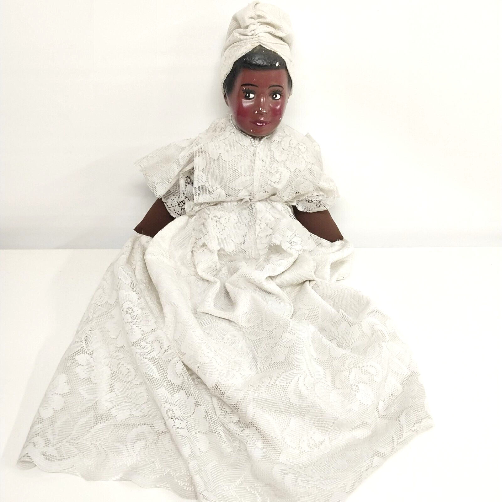 Black Chalkware Bust Bride Doll Hand Made Stuffed Body Lace Dress 28"