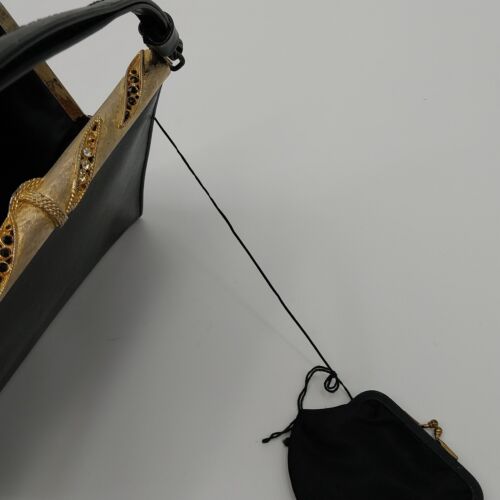 Black Handbag Vintage w Coin Purse Rhinestone Metal Clasp Closure 8"