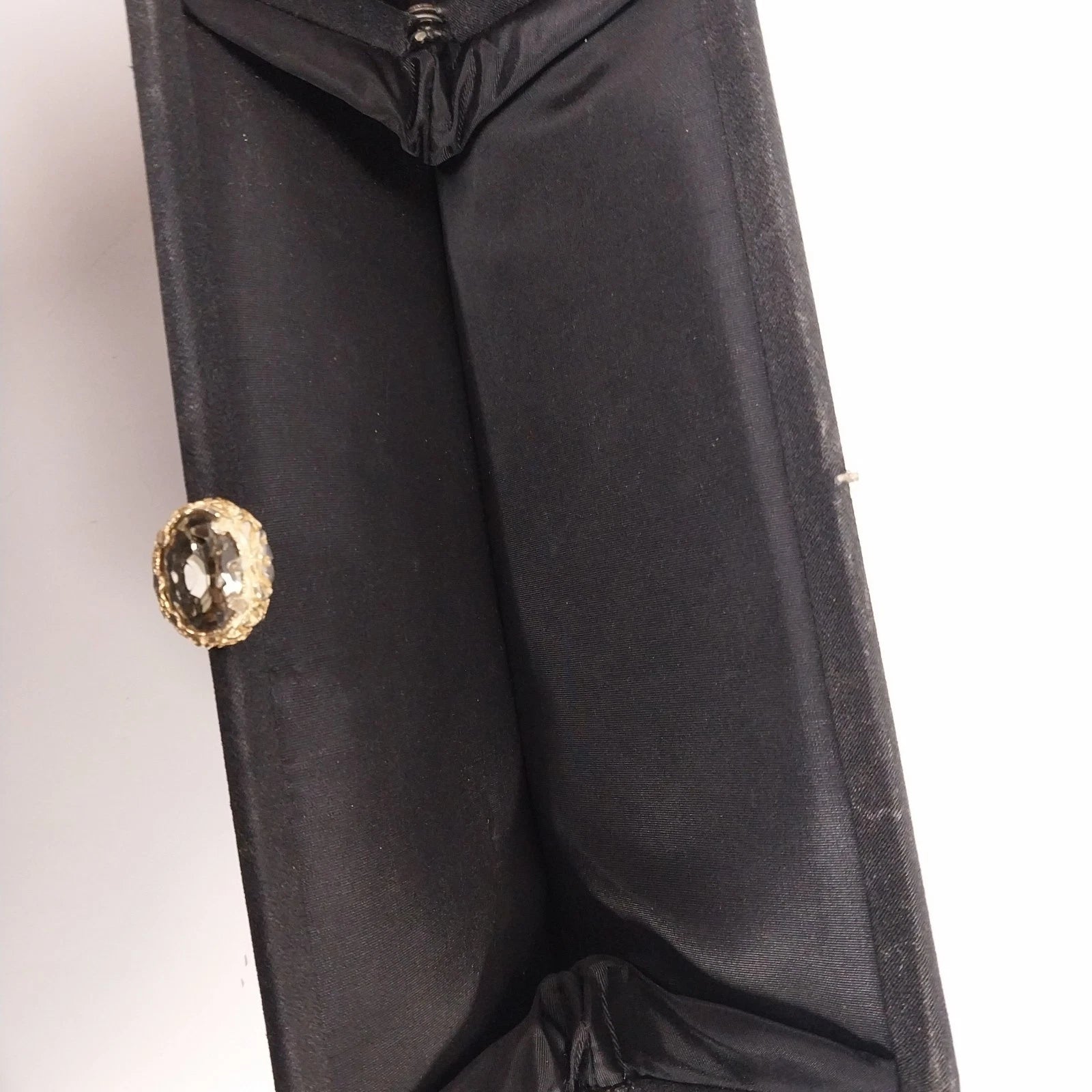 Black Structured Clutch Purse Bag Gold Faux Stone Clasp Vintage Eveningwear
