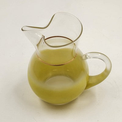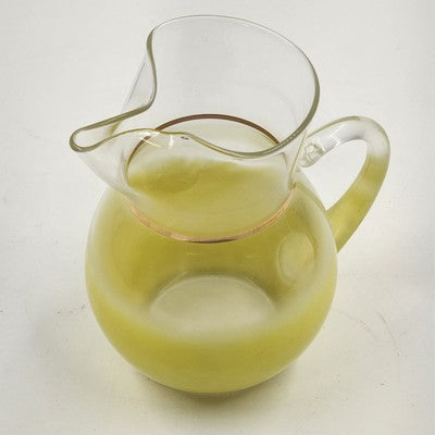 Blendo Yellow to Clear Pitcher w/ Gold Band Ice Lip WV Glass 6.25"x4"