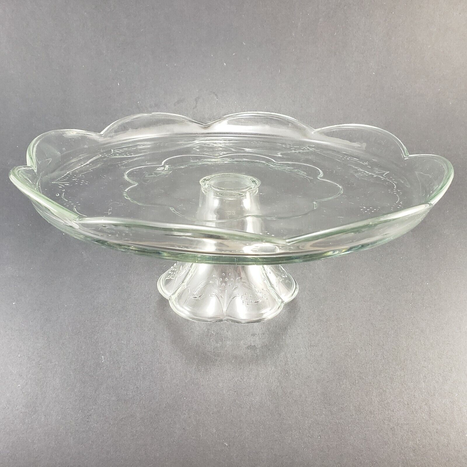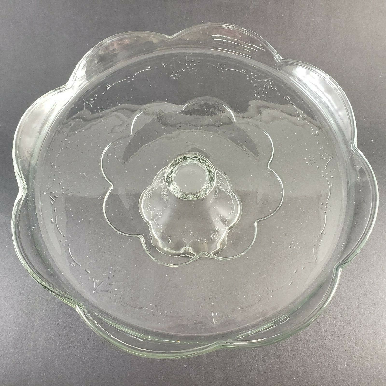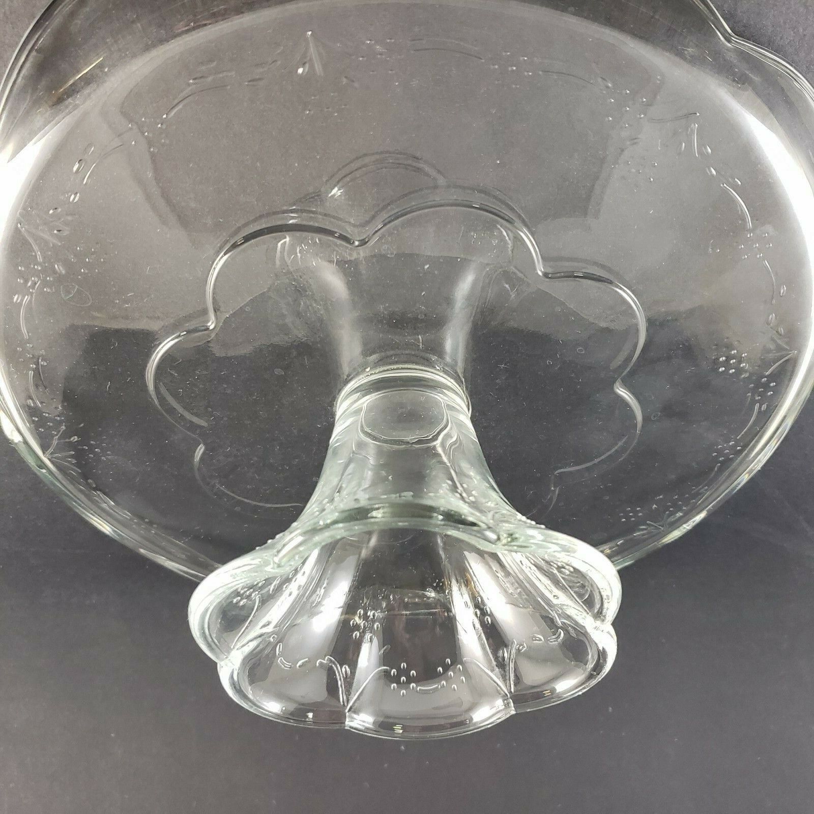 Blossom Pattern Clear Glass Pedestal Cake Stand Scalloped Lip Pfaltzgraff USA