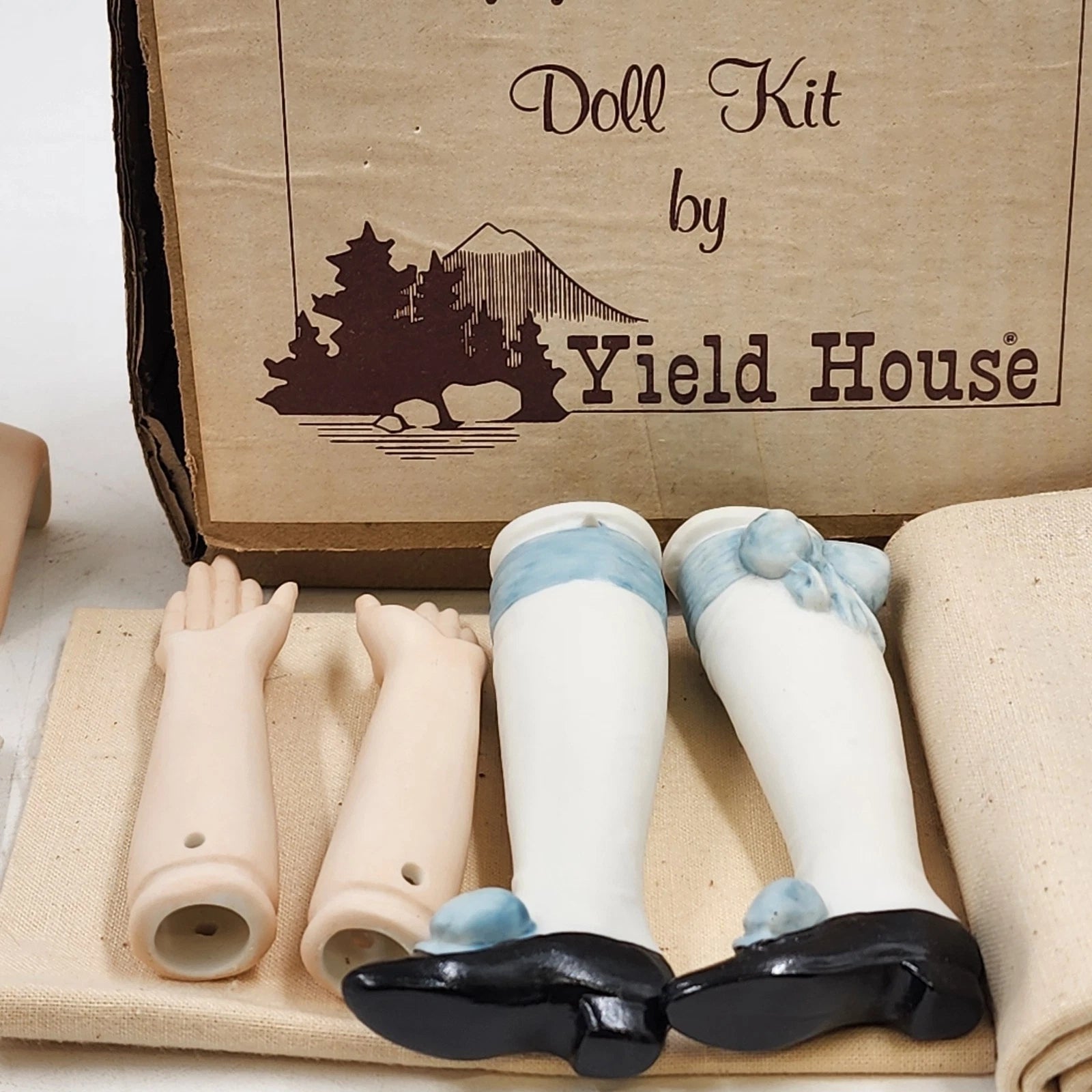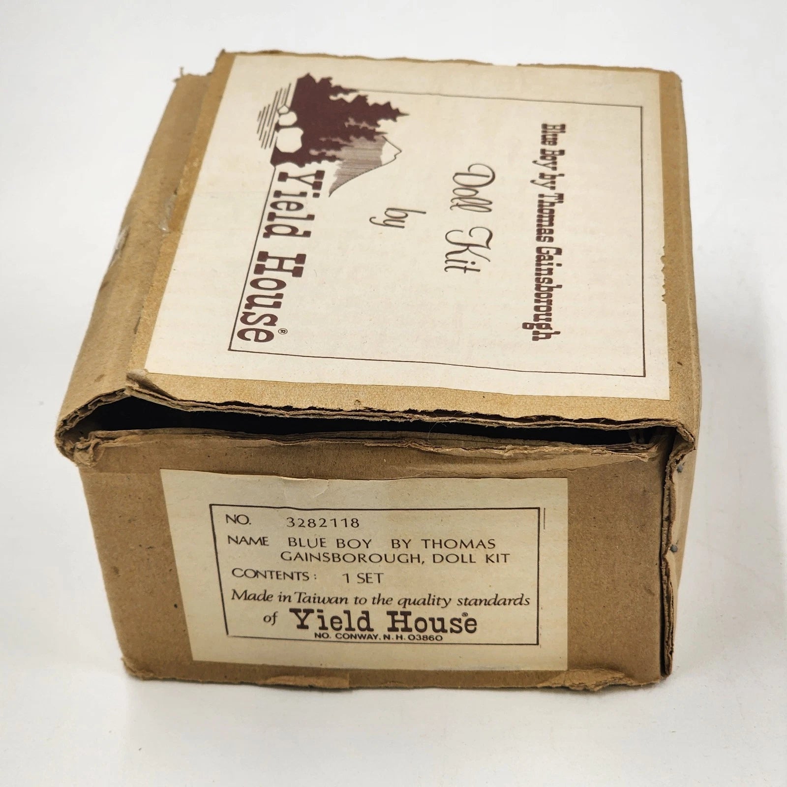This vintage Blue Boy Bisque Doll Kit by Yield House is inspired by Thomas Gainsborough's famous painting The Blue Boy. The kit includes a bisque head, arms, legs, body fabric, and pattern, perfect for doll makers and collectors alike.
