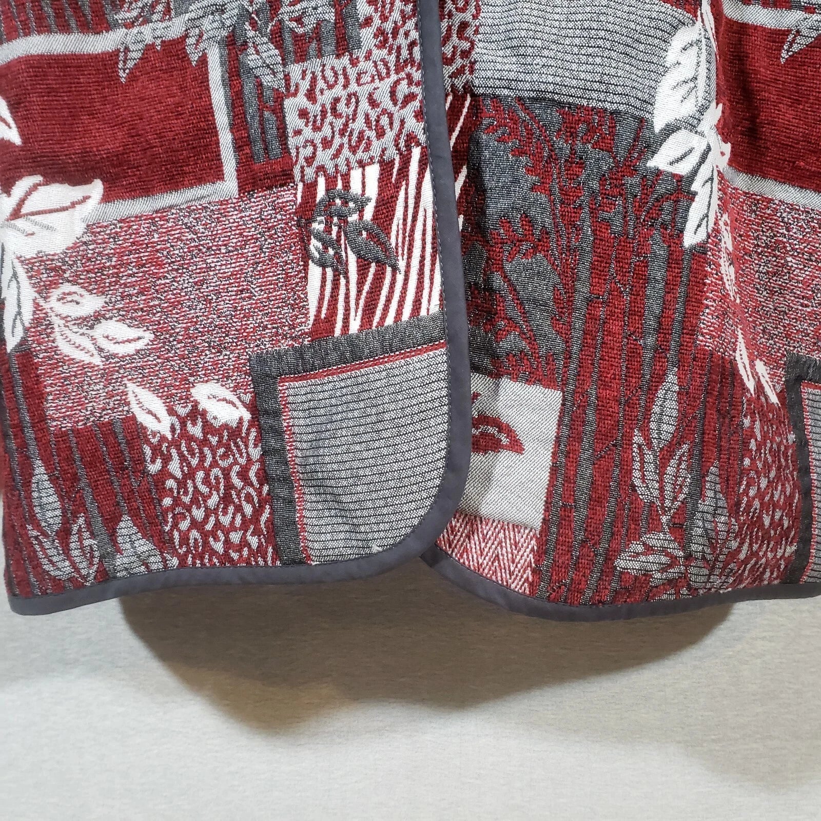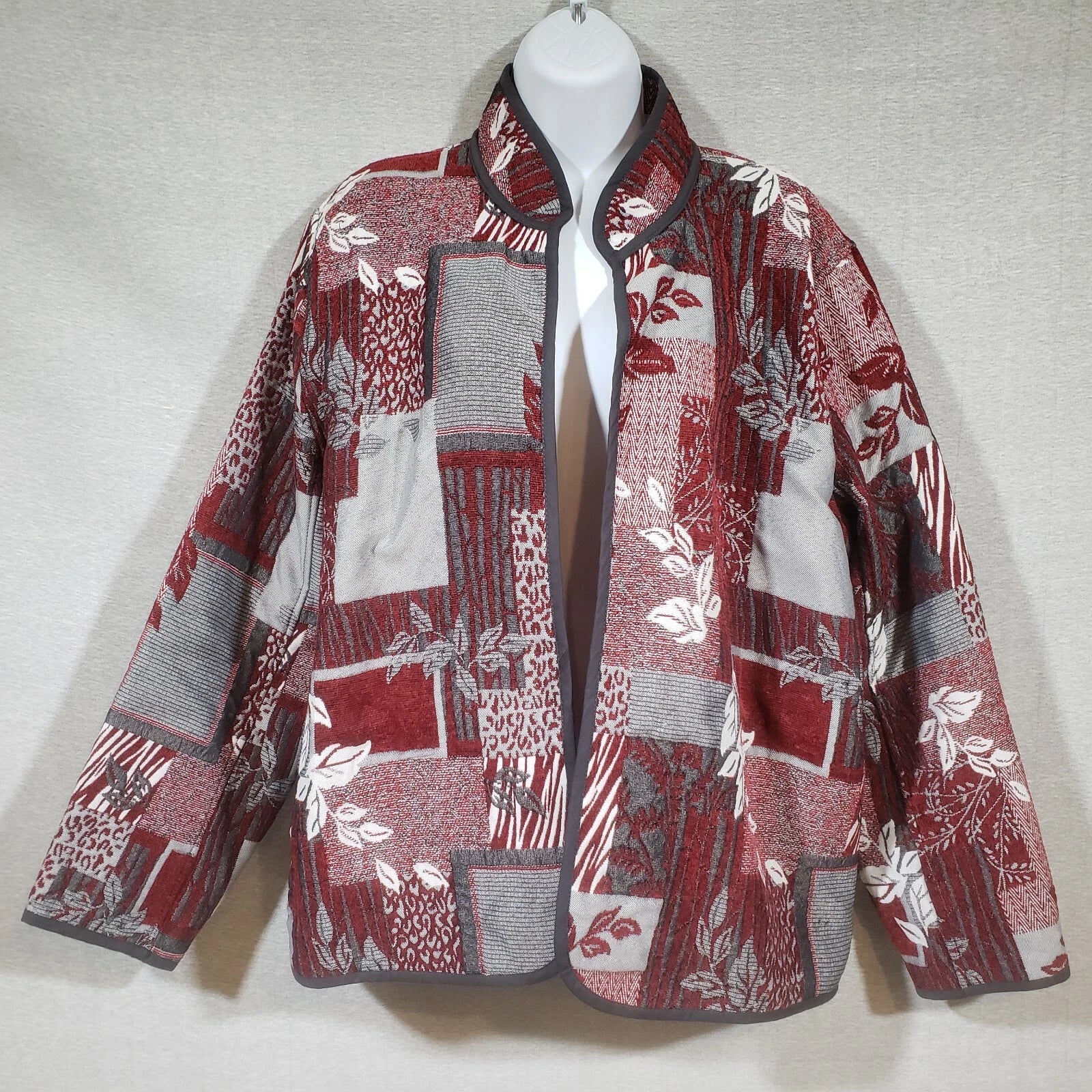 Bon Worth Womens Large Tapestry Weave Red Gray Block Print Blazer Jacket Unlined