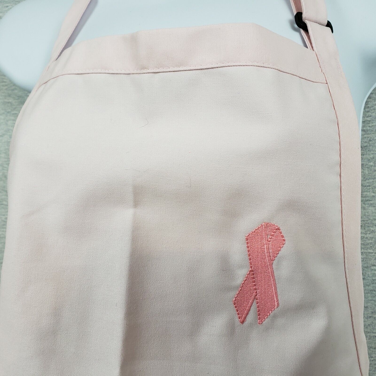 Breast Cancer Awareness Pink Ribbon Pink Bib Apron 3 Pocket 28"W x 24"L Adj Neck