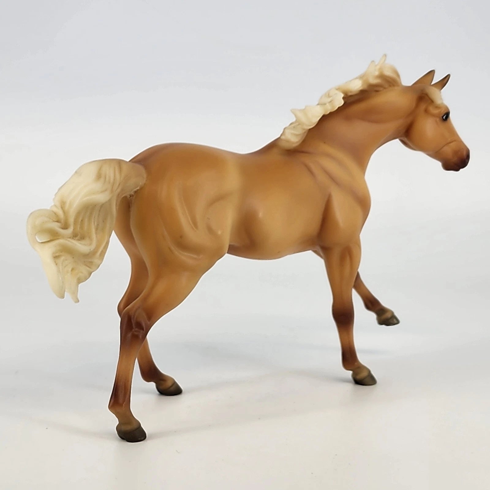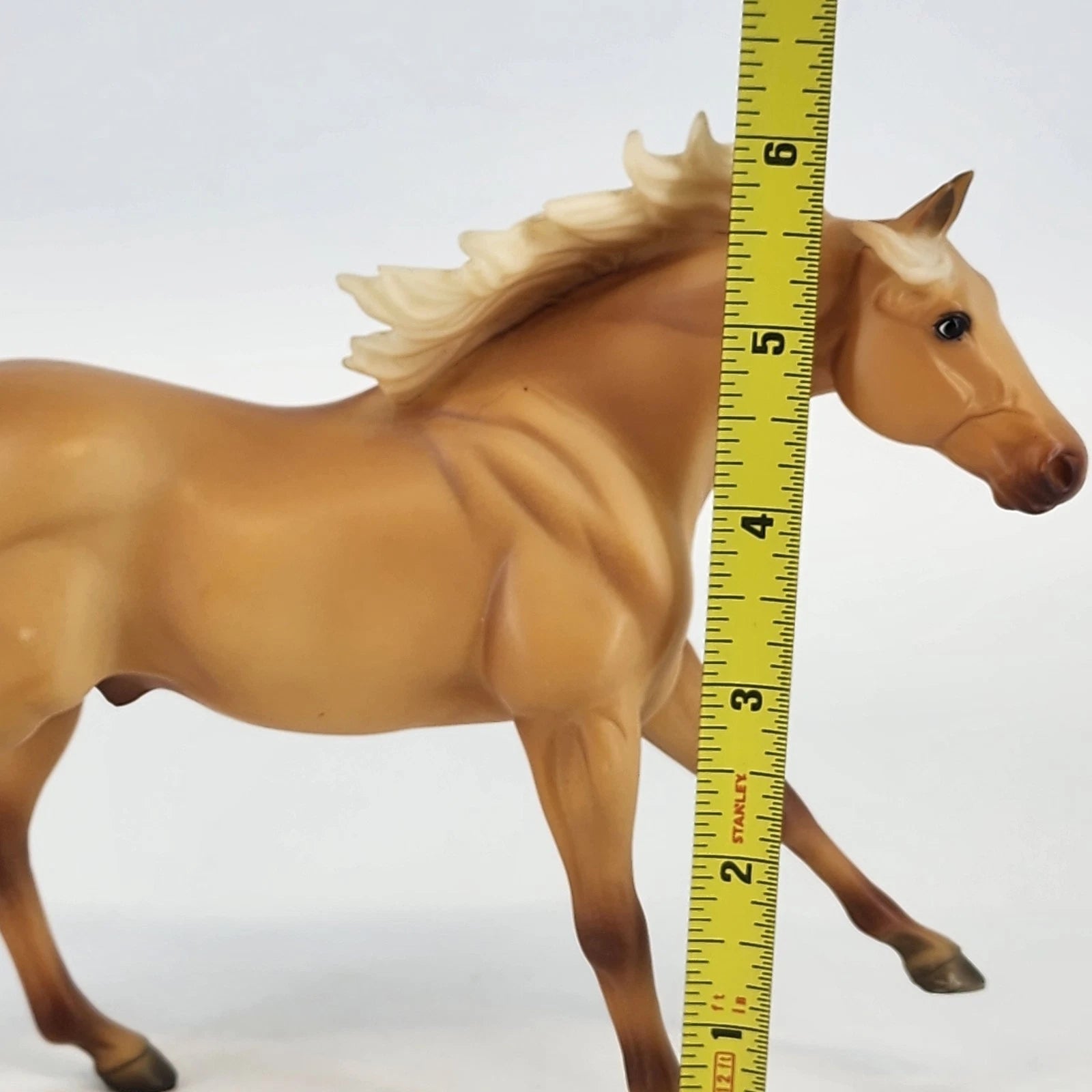 Gallop into a new adventure with this beautiful 2007 Breyer Freedom Series (formerly Classics) Quarter Horse Stallion. Featuring a stunning, sun-kissed palomino coat and a contrasting white mane and tail, this 1:12 scale model captures the powerful build and calm disposition of America's most popular horse breed. Whether you're a young equestrian looking for the perfect play companion or a collector seeking a clean example of this 2007 release, this stallion stands as a testament to Breyer's hand-painted realism and durable craftsmanship.