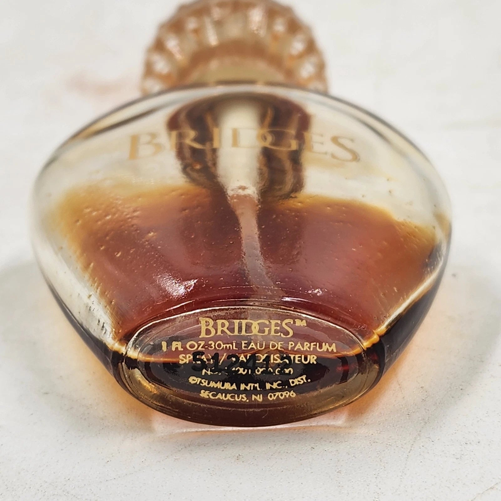This is a vintage bottle of Bridges Eau De Parfum Spray by Tsumura International. This classic and increasingly rare fragrance is a wonderful collectible, perfect for enthusiasts of vintage or discontinued scents.