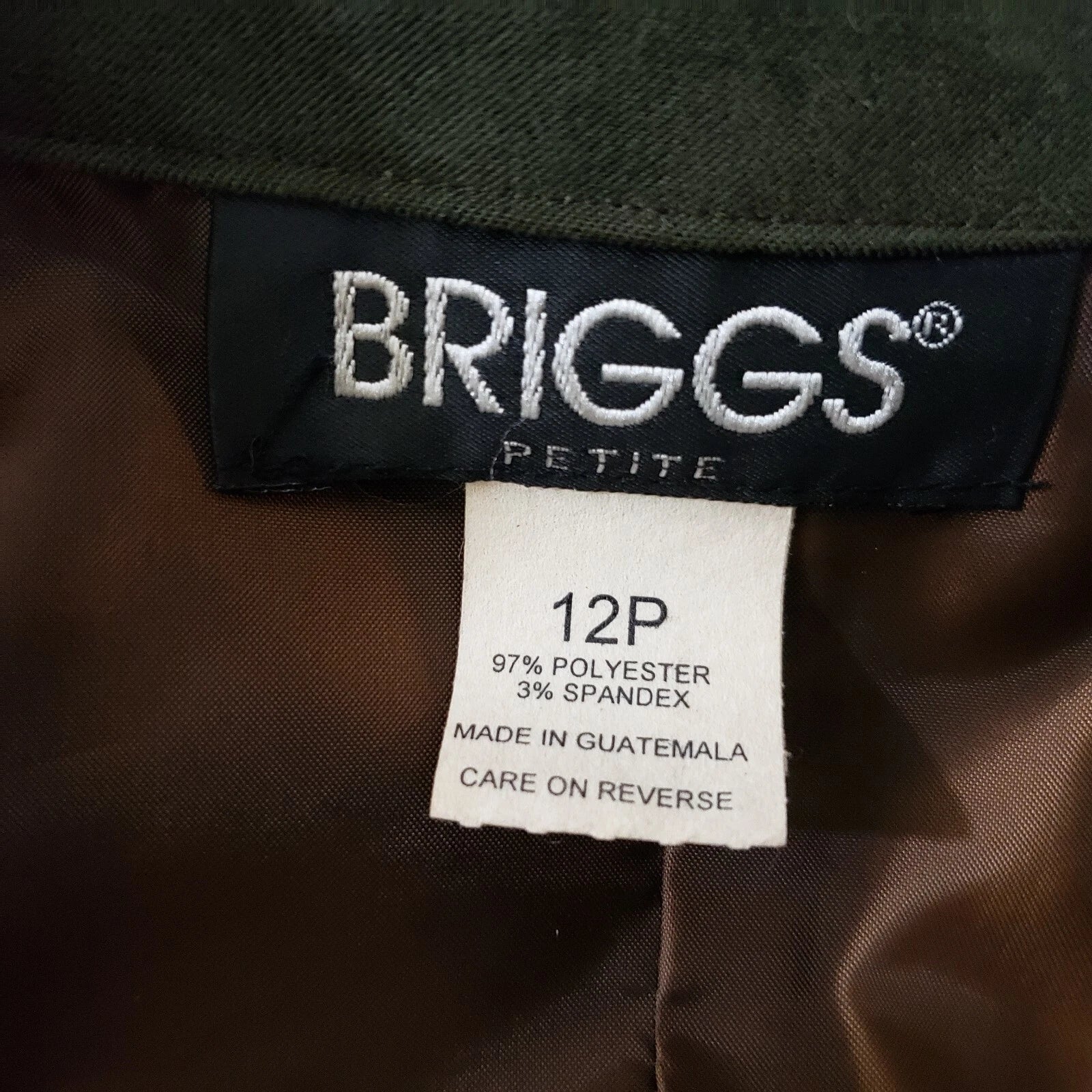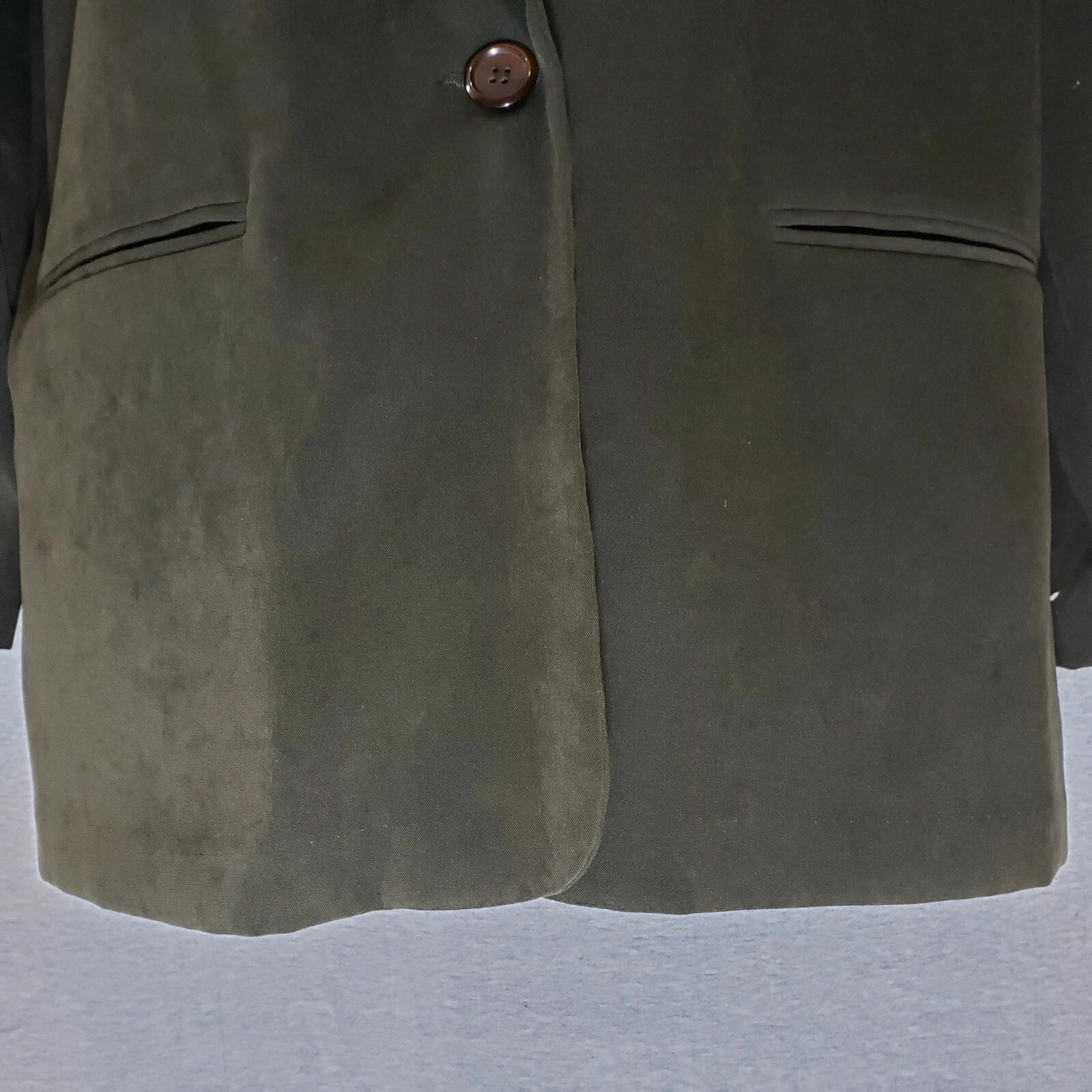 Briggs Womens 12-P Soft Olive Polyester Button Up Blazer Jacket Shoulder Pads
