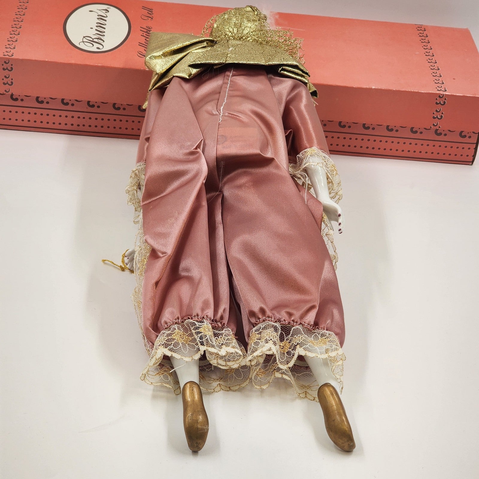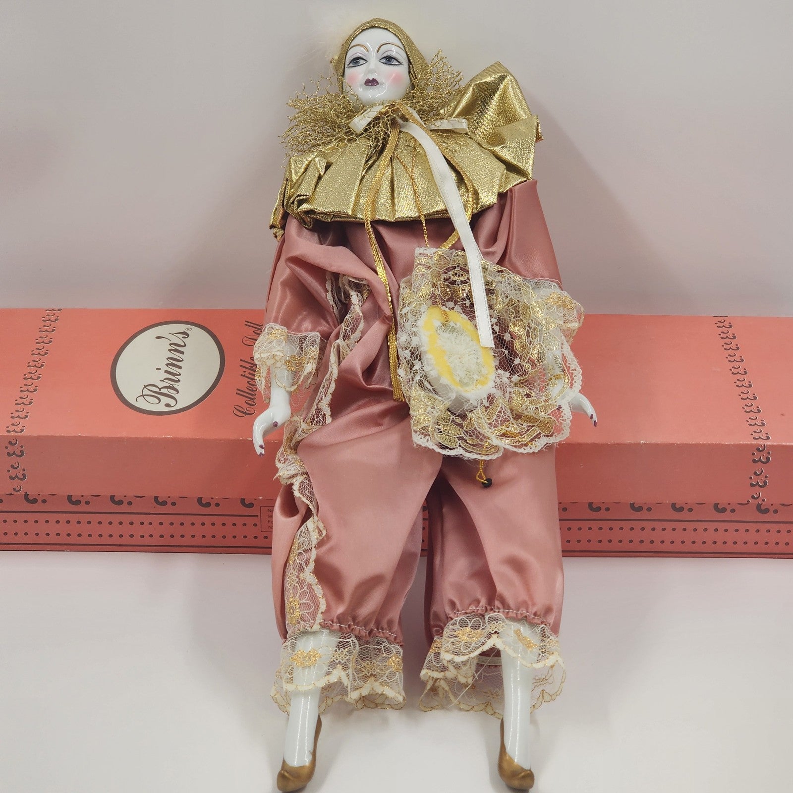 Brinn's Harlequin Porcelain Doll Mardi Gras Clown Mauve & Gold 17" 1991 COA VTG