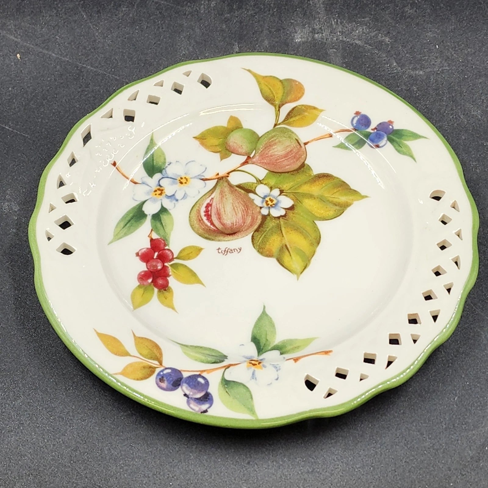 Brunelli Tiffany Pattern Reticulated Figs and Flowers Plate 8.5" Italy Signed