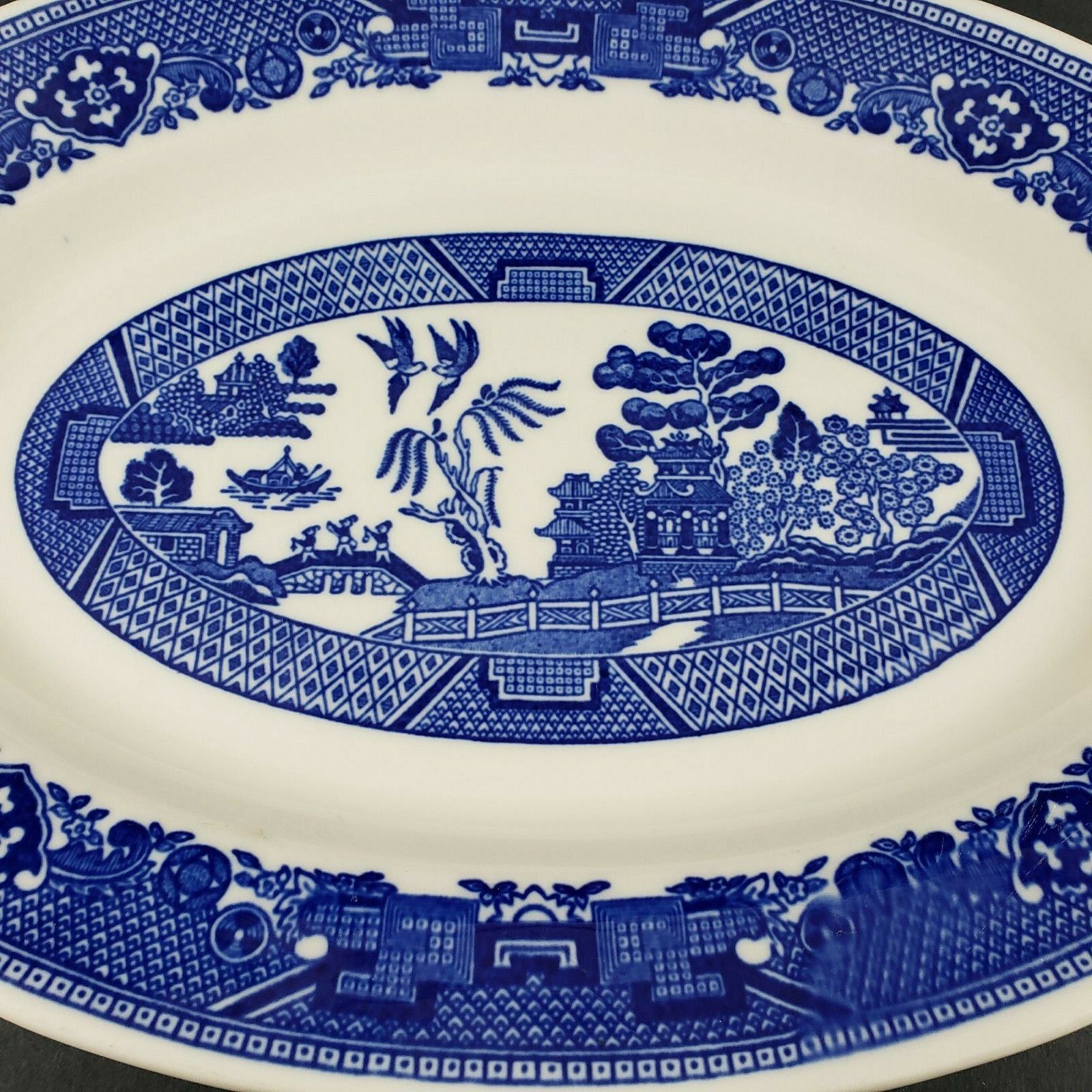 Buffalo Pottery Blue Willow 13" Oval Serving Platter Restaurant Ware Antique