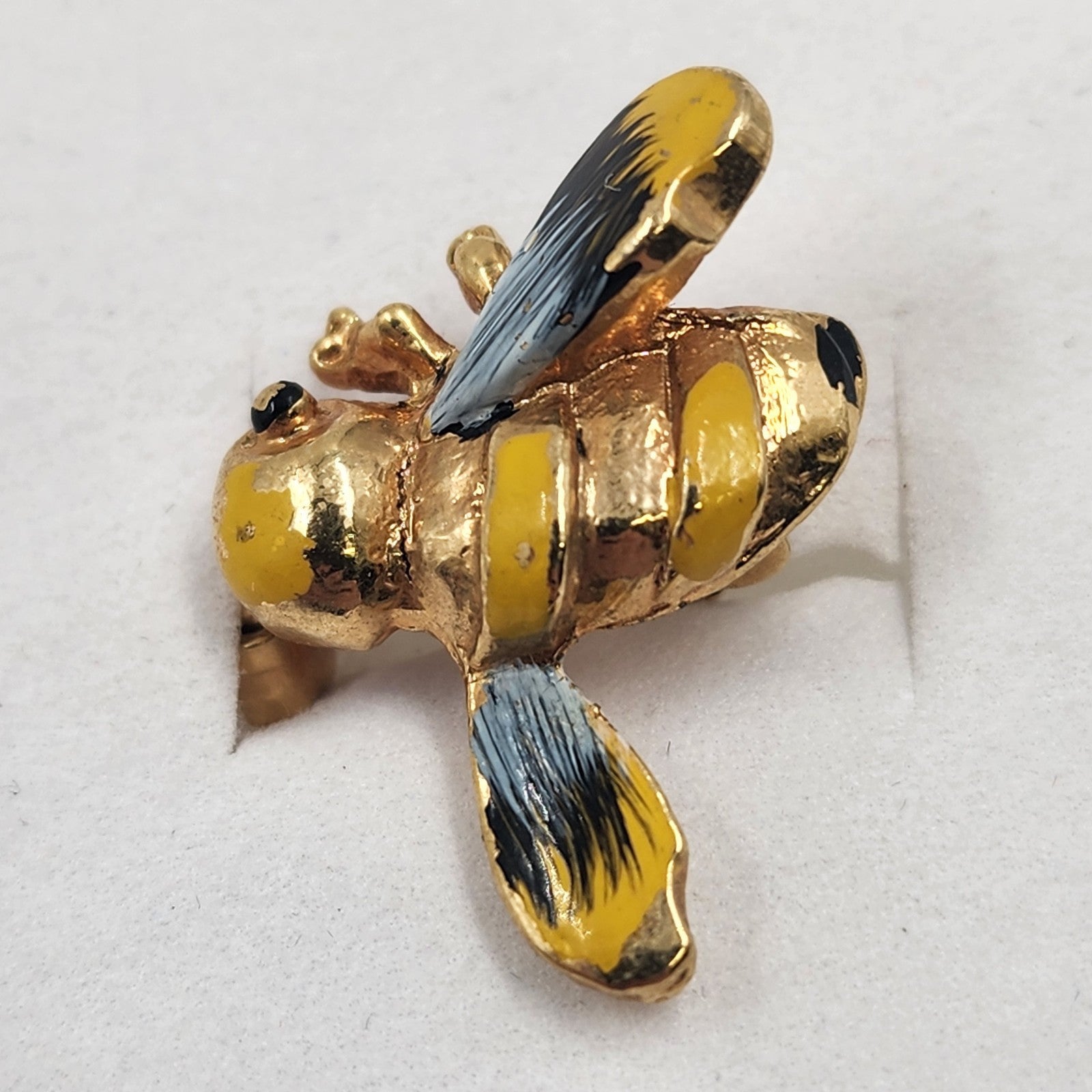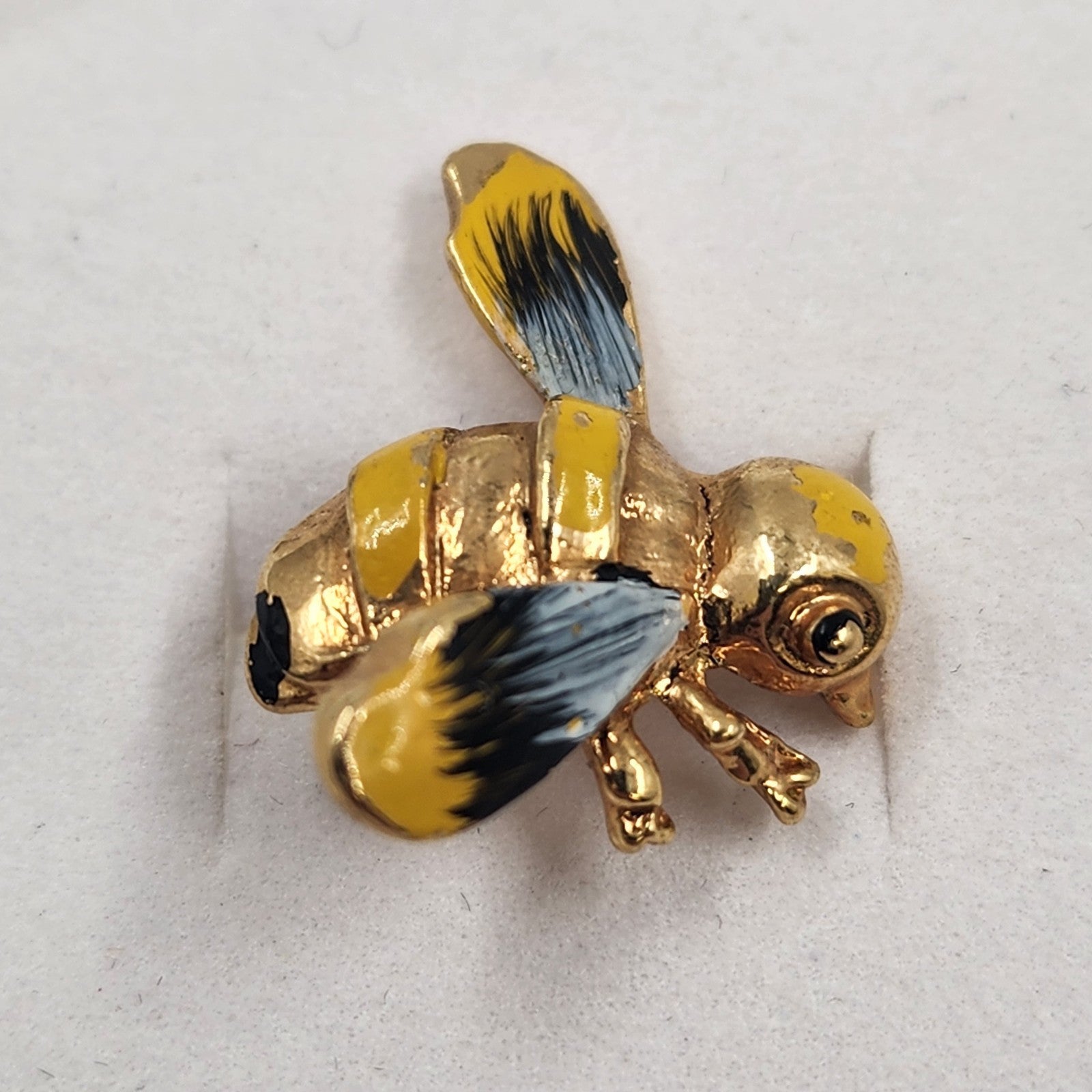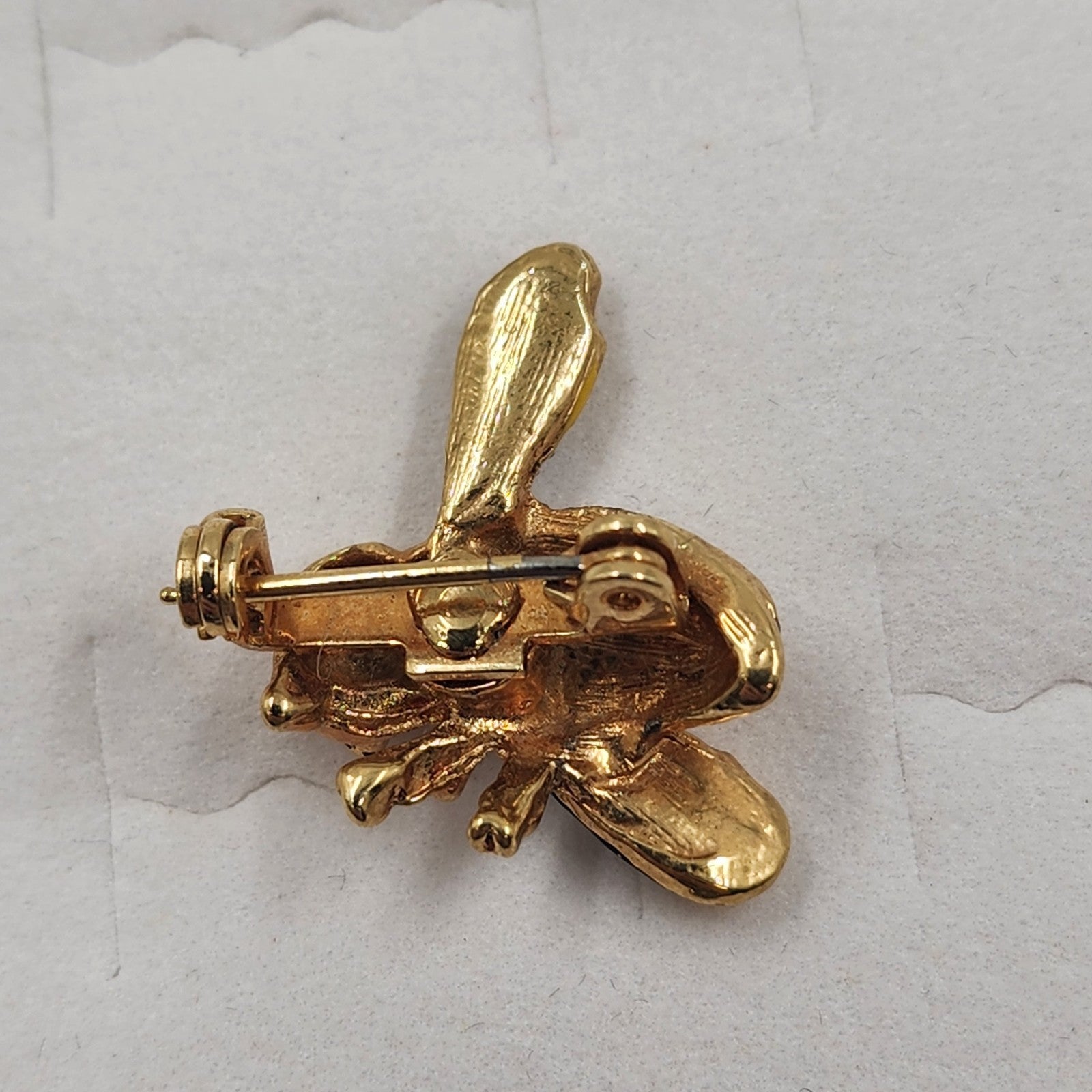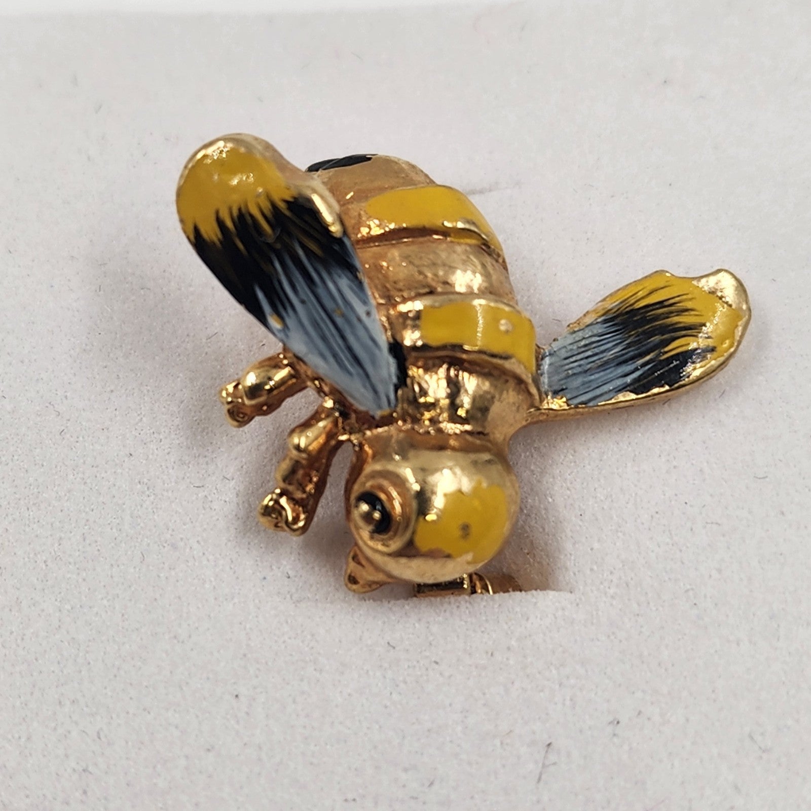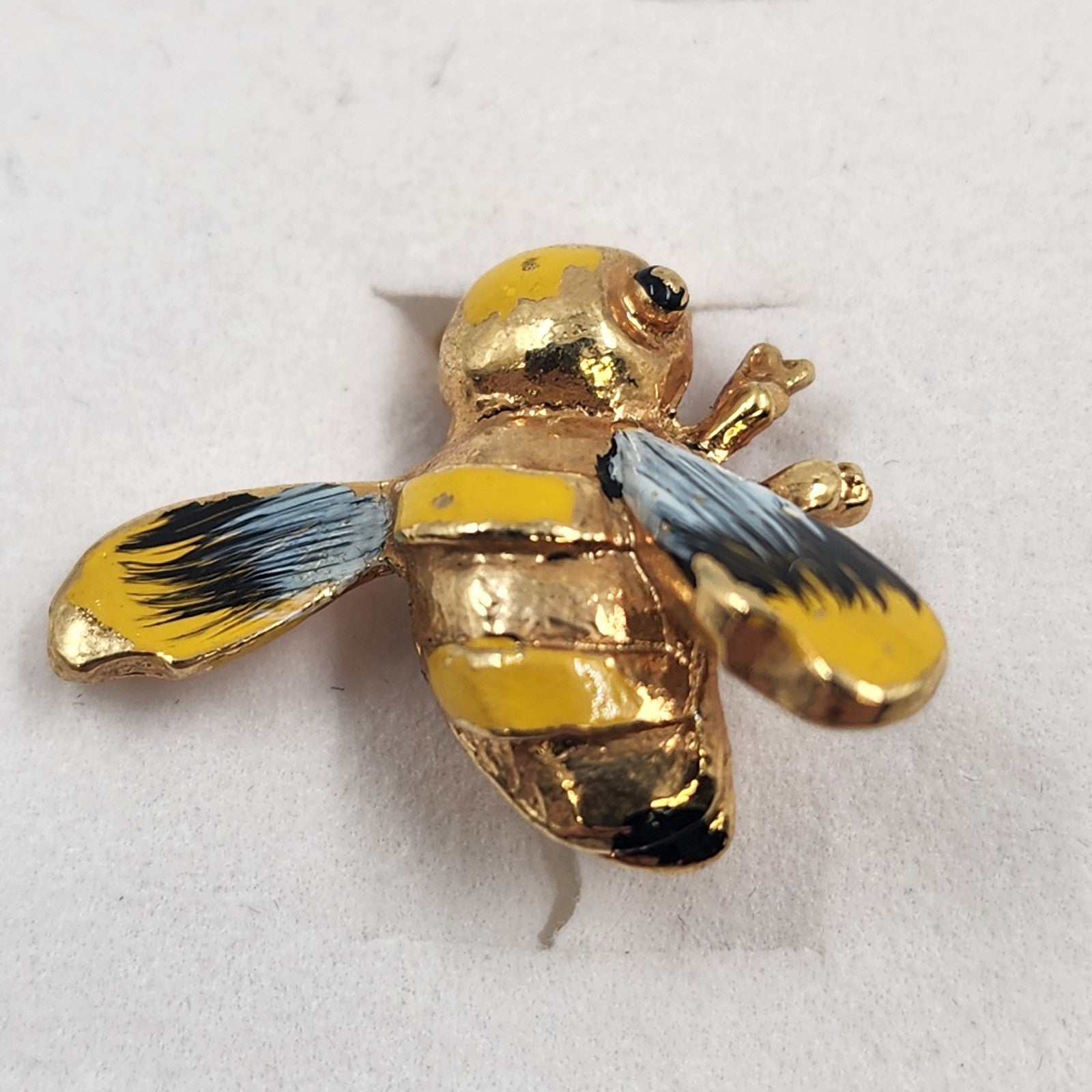 Bumble Bee Brooch Pin Gold & Black Enamel Bug Design Cute Fashion Accessory